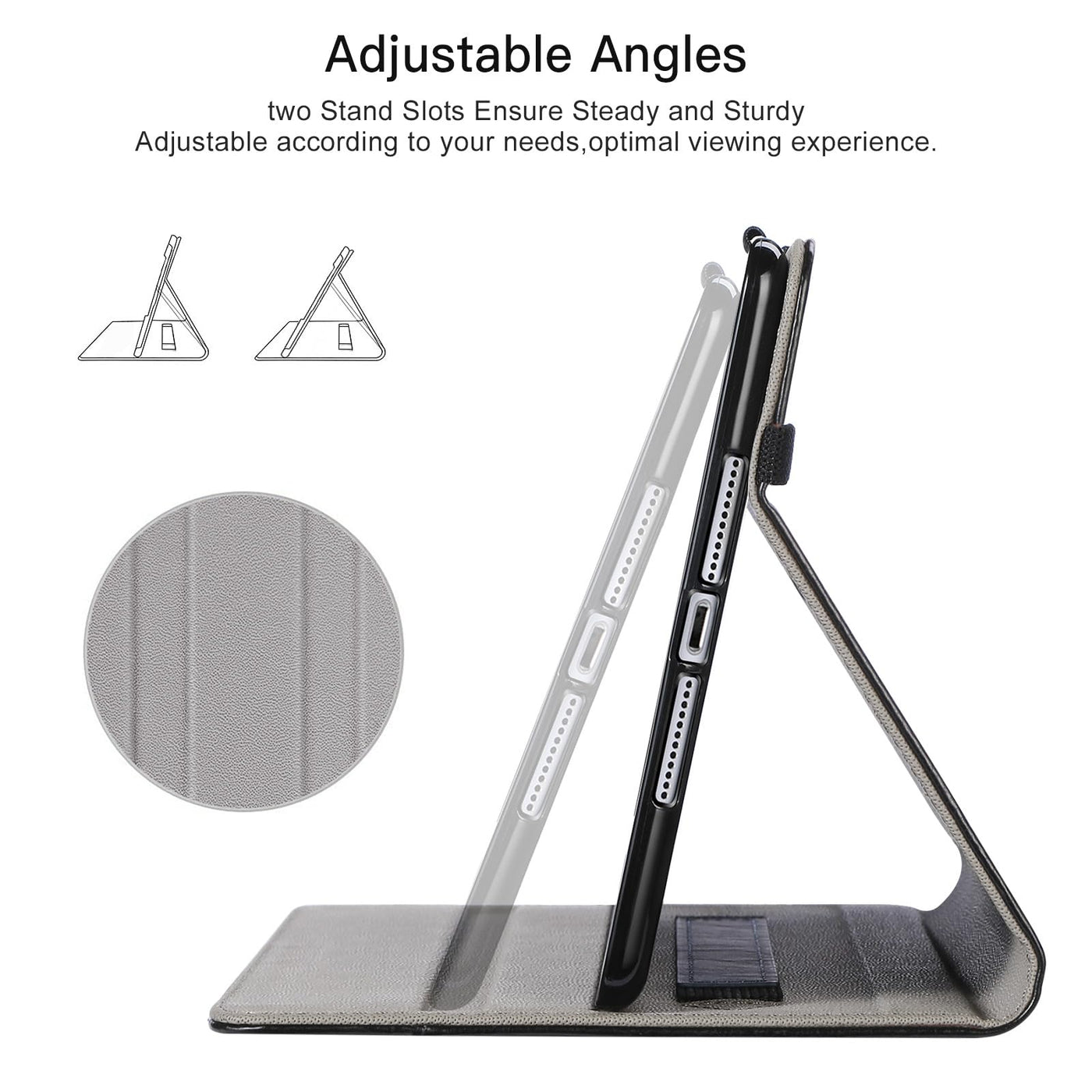 Compatibility:Designed For Apple Ipad Mini 5 2019 (A2133 A2124 A2126 A2125), Ipad Mini 4 2015 (A1538 A1550), Ipad Mini 3 2014(A1599 A1600),Ipad Mini 2 2013(A1489 A1490 A1491),Ipad Mini 2012 (A1432 A1454 A1455 ). Not Compatible With Other Ipad Models. | Premium Material - Excellent Workmanship With Premium Synthetic Pu Leather Exterior, Anti-Slip Interior Lining And Soft Tpu Back Cover, Protect Your Ipad Mini Tablet From Scratches, Impacts, Dust Or Any Other Daily Damage. | Multi-Functional Features - Magnetic Closure Cover Support Auto Sleep/Wake Function. Two Deep Grooves Able To Set Up Two Horizontal Stand Angles. Built-In Elastic Stylus Holder For Carrying Your Pencil Everywhere. | Excellent Storage - Built-In Organizer Pocket. Use The Document Card Pocket To Store Your Business Cards, Bank Cards, Notes, Cash Or Bills While On The Go. | Functional Elastic Strap - Interior Hand Strap For Comfortable One-Handed Use. Exterior Elastic Closure Strap Which Adds To The Magnetic Closure To Keep The Case Closed And The Ipad Mini 5/4 Tablet Protected When Not In Use.