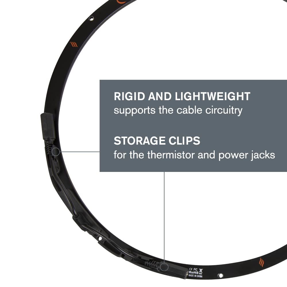 Q: What materials are used in the construction of the Dew Heater Ring?A: The Dew Heater Ring is constructed from lightweight, durable aluminum, ensuring a rigid frame that supports cable circuitry while minimizing additional weight on your telescope.