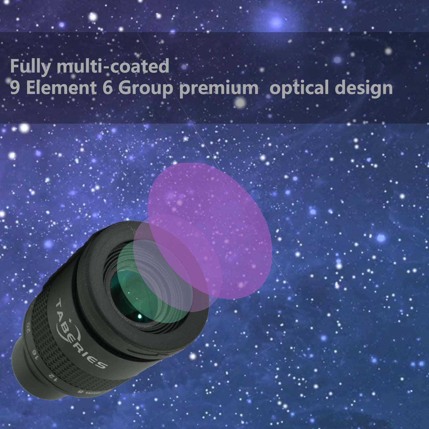 This Is Definitely A Must For Beginners To Start A Good Eyepiece Collection.With This Eyepiece, You Can Enjoy Planetary Astronomy Without Spending A Lot Of Money.As A Beginner;Teleeye01 Is Great For Starter Astronomer! 40-57Field Of View It Also Gives You A Clear And Bright Angle Of View While Ensuring You Get The Magnification You Need;Compatible With Any Telescope That Accepts 1.25 Inch Eyepieces 8Mm To 24Mm Linear Continuous Zoom Regarding The Zoom Action; It Is Stiff Enough That You Won'T Accidentally Shift Focal Lengths; But It Is Also Smooth Enough That You Can Rotate It Without Holding The Base Of The Eyepiece With Your Other Hand High Quality Optical Design 9Element 6 Group Premium Optical With Fmc Ultra High Quality Standard Coating;It Also Ensures The Transmission Of Light Up To 97% While Reducing The Loss Of Light During Transmission M28.5*0.6 Filter Thread Teleeye01 Zoom Eyepiece Has M28.5*0.6 Threads On The Bottom Very Convenient For Connecting Filter;Works Great For Photography Focal Length: 8 Mm-24 Mm. Angular Field Of View: 40-60 Eye Relief: 17 Mm-22 Mm Versatile 8Mm-24Mm Zoom For Low Power And High Power Viewing;9Mm-24Mm Zoom Eyepiece Perfect Focal Length Range For Beginner Intermediate Astronomers With Ease Of Access To Different Focal Lengths