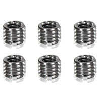 Q: How many adapters are included in the package?A: The package includes 6 packs of 1/4"-20 to 3/8"-16 convert screws adapter along with a plastic screw storage box for convenient organization.