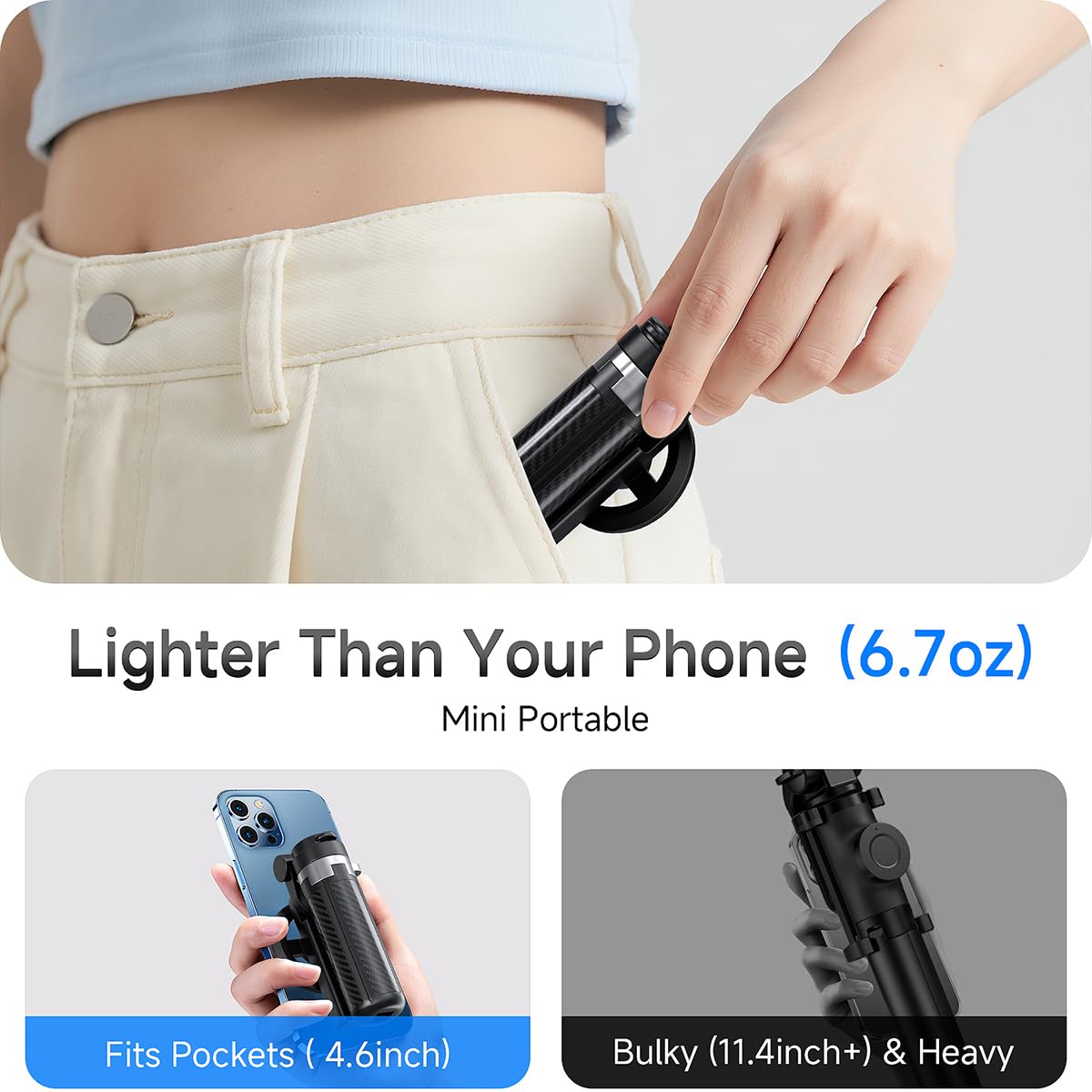 4-In-1 Magnetic Selfie Stick Tripod - 360 Rotation, Bluetooth Remote, Compact Travel Vlog Phone Holder For Iphone And Android