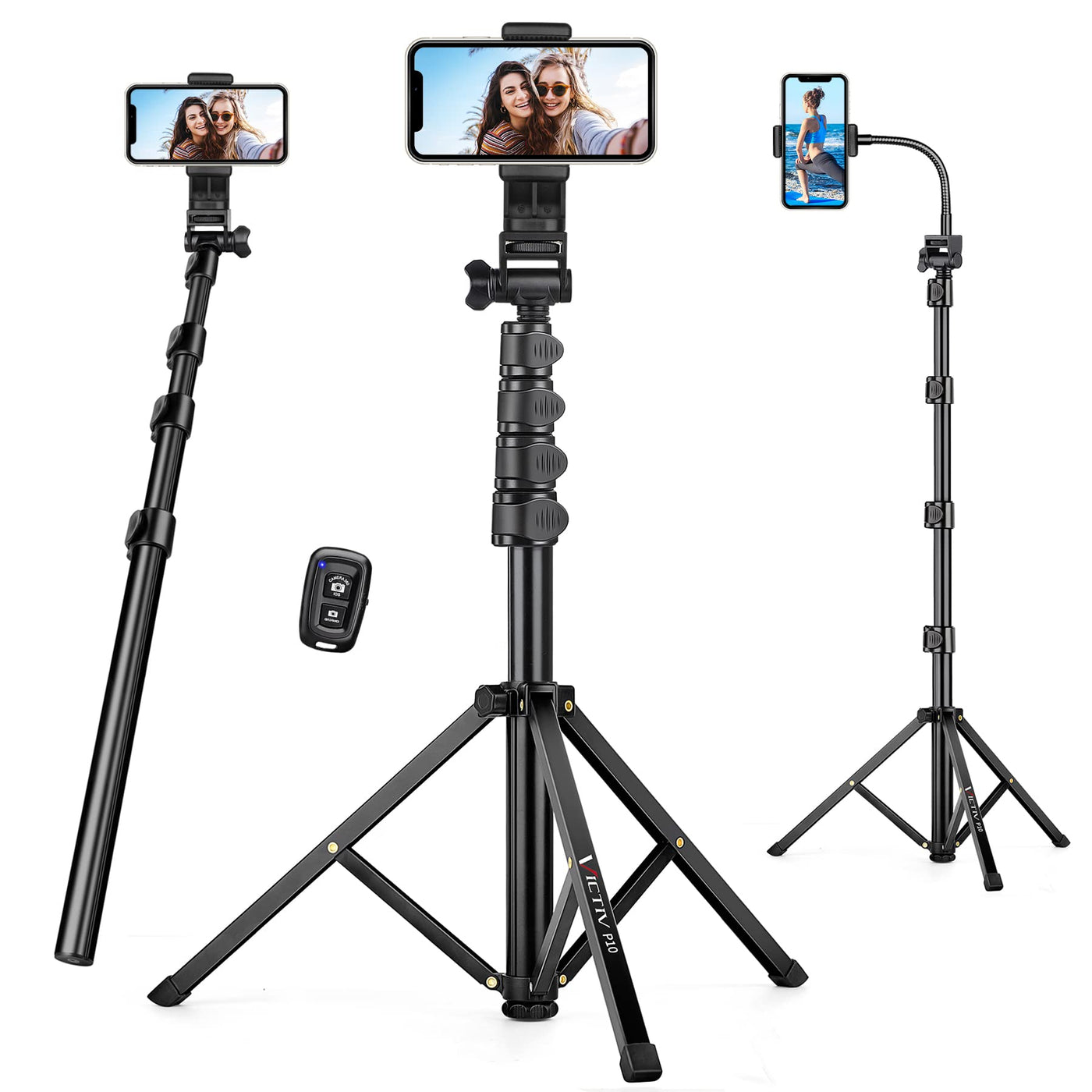 74 Inch Phone Tripod, Tall Cell Phone Tripod With Adjustable Gooseneck And Remote, Portable Phone Stand Tripod For Recording, Se