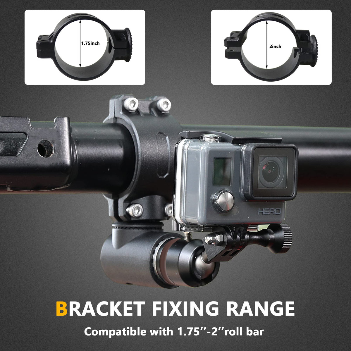 Bestaoo Utv Atv Camera Mount Compatible With Gopro For 1.75'' 2'' Roll Bar, Aluminum 360 Rotation Action Camera Holder For All G