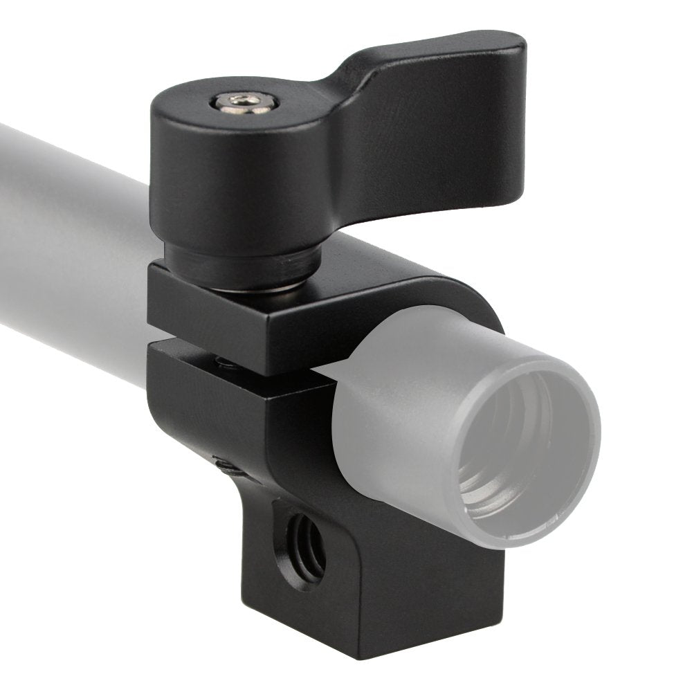 The Camvate Single 15Mm Rod Clamp Have Two 1/4''-20 Thread Hole On The Side For Attaching Any 1/4''-Threaded Accessory. The Adjustable Black Wingnut Can Be Pulled Out And Turned To A More Friendly Position Being Tightened. Net Weight: 23G Package Include: 1 X 15Mm Single Rod Clamp