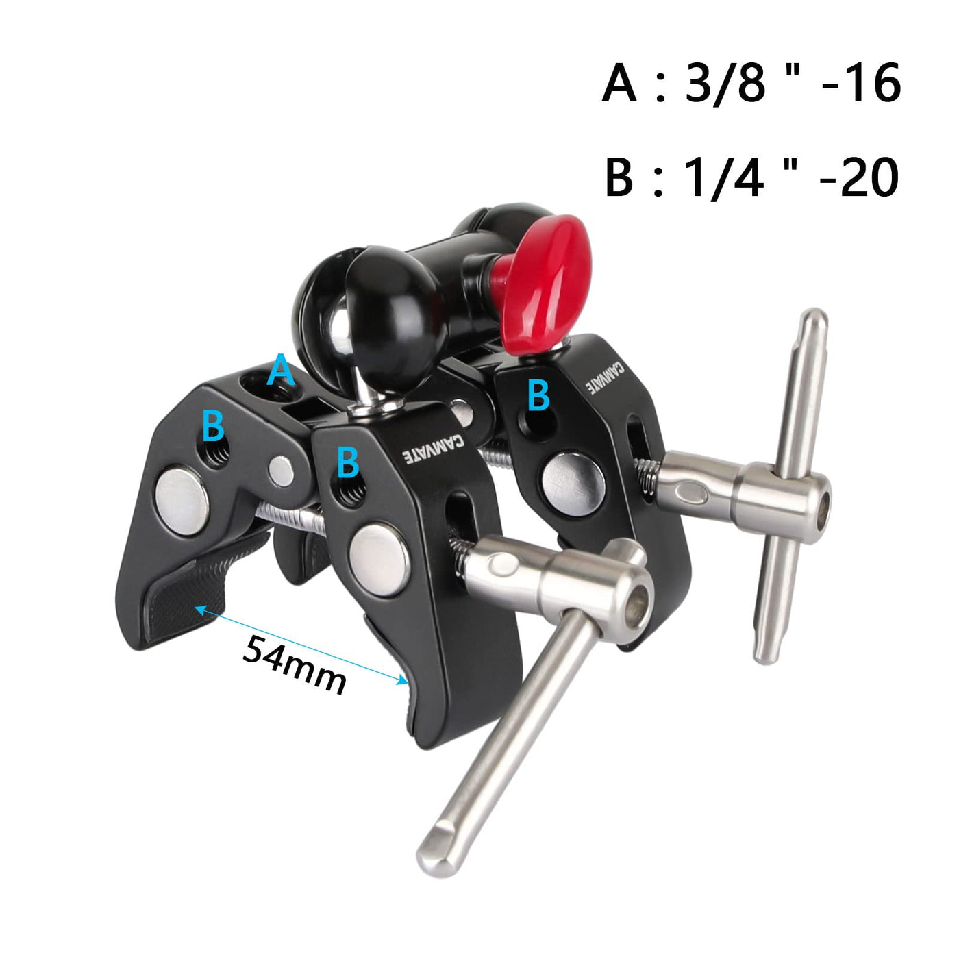 Description: This Product Have Two Super Clamp Articulating With Magic Arm,So You Can Connect Two Rod Together,Maybe Sometime When You Want To Get Some Shooting In The Rain,You Can Use This Double Clip To Connect You Tripod With A Umbrella To Pretect Your Camera. Package Included: 1 X 360Swivel Ball Head 2 X Super Clamp