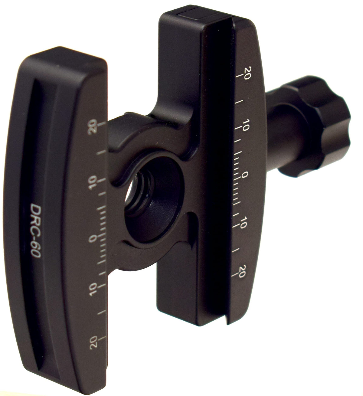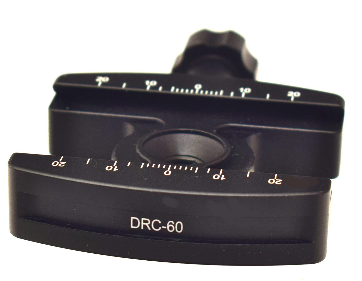 Q: Can I use the DRC-60 clamp on different types of tripod heads?A: Yes, the DRC-60 clamp features a 3/8" mounting hole and includes a 1/4" bushing adapter, allowing it to be used on virtually any tripod head, monopod, or tripod.