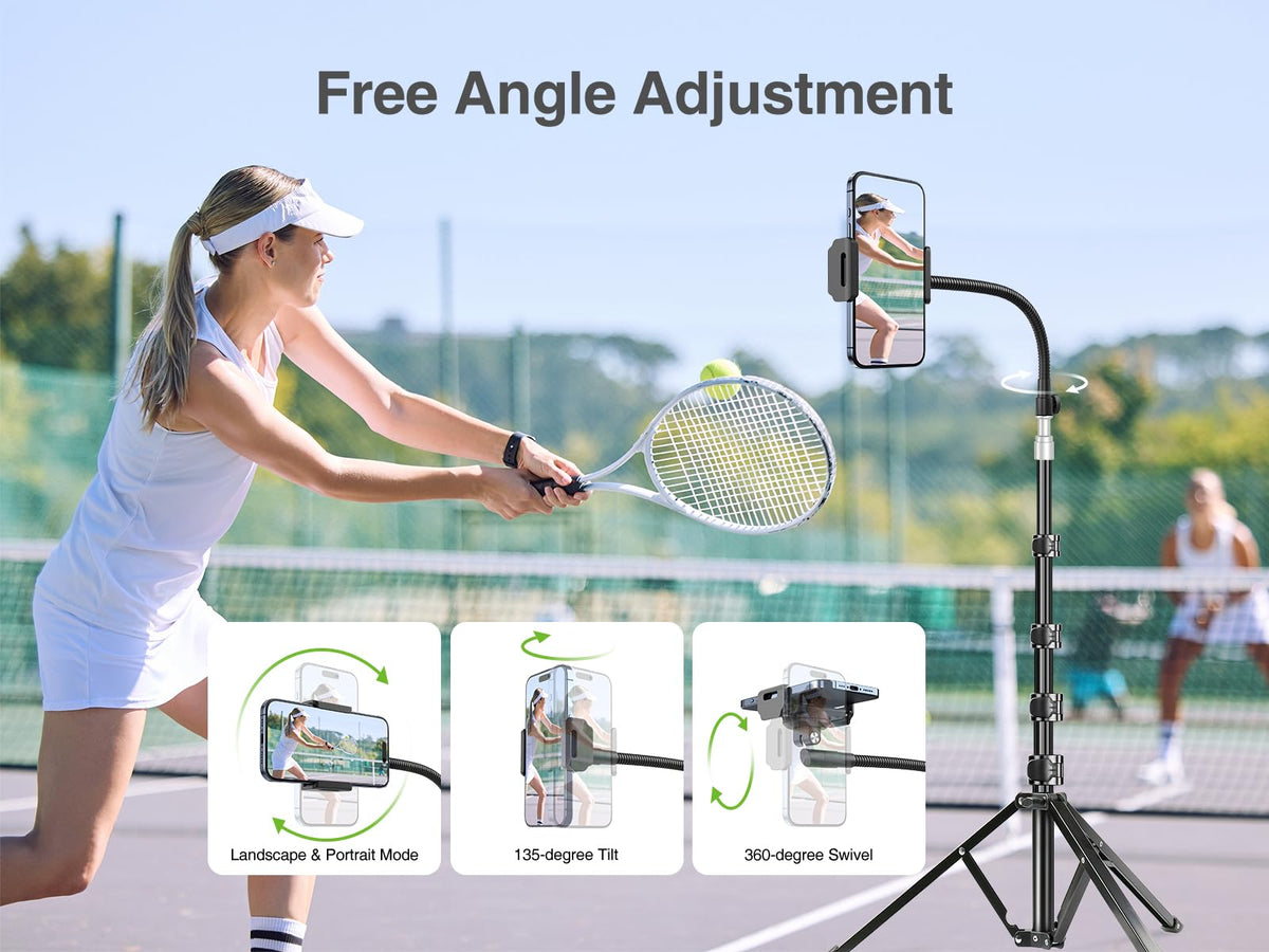 Q: Can the tripod be used for video recording and photography?A: Yes, the Elitehood phone tripod is perfect for both photography and videography. Its adjustable height and flexible gooseneck enable users to capture various angles, whether for sports events, family gatherings, or artistic projects like time-lapse photography.