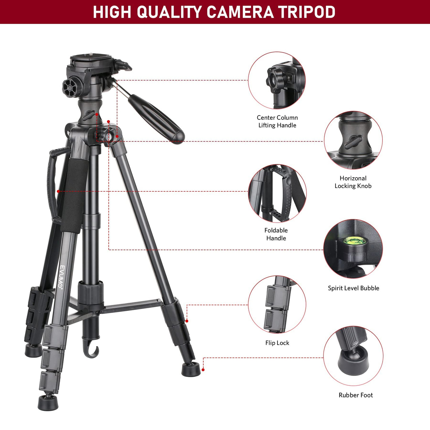 Evumo Hf3 Horizontal Tripod For Camera And Iphone, 65 Overhead Camera Tripod & Monopod 2In1 With Remote And Phone Mount, 360 R
