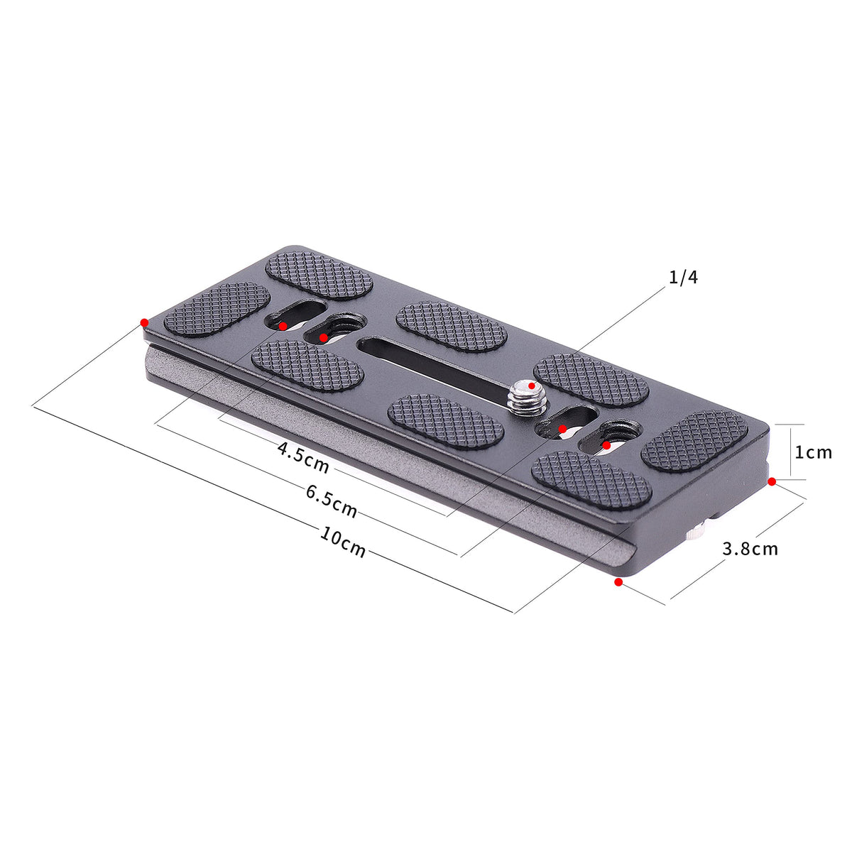 High Quality Brand New! Never Used! This Pu-100 Slide-In Quick Release Plate Has A 1/4&Quot;-20 Thread And Is A Spare Or Replacement Part For B-1, B-2, &Amp; B-3 Ballheads And Other Arca-Swiss Compatible Quick Release Clamps. Features: ▲Safe Screw Installed In Both Side To Prevent Drop Of Camera By Accident. ▲You Can Change The Location Of The Screw To Fit Different Cameras. ▲Universal Designed To Be Compatible With Other Brand Quick Release Systems. ▲Built With Excellent Materials, Offering Outstanding Quality. ▲Material: Aluminum Alloy. ▲Color: Matt Black ▲Length: 100Mm ▲Width: 38Mm (Universal Width Of Arca-Swiss Standard Qr Plates). ▲Thickness: 10Mm (Universal Thickness Of Arca-Swiss Standard Qr Plates). ▲Mounting Screw Diameter: 1/4&Quot; Compatible With: Acra-Swiss Style Ballhead &Amp; Clamp Package Includes: 1 X Quick Release Plate 1 X Screw