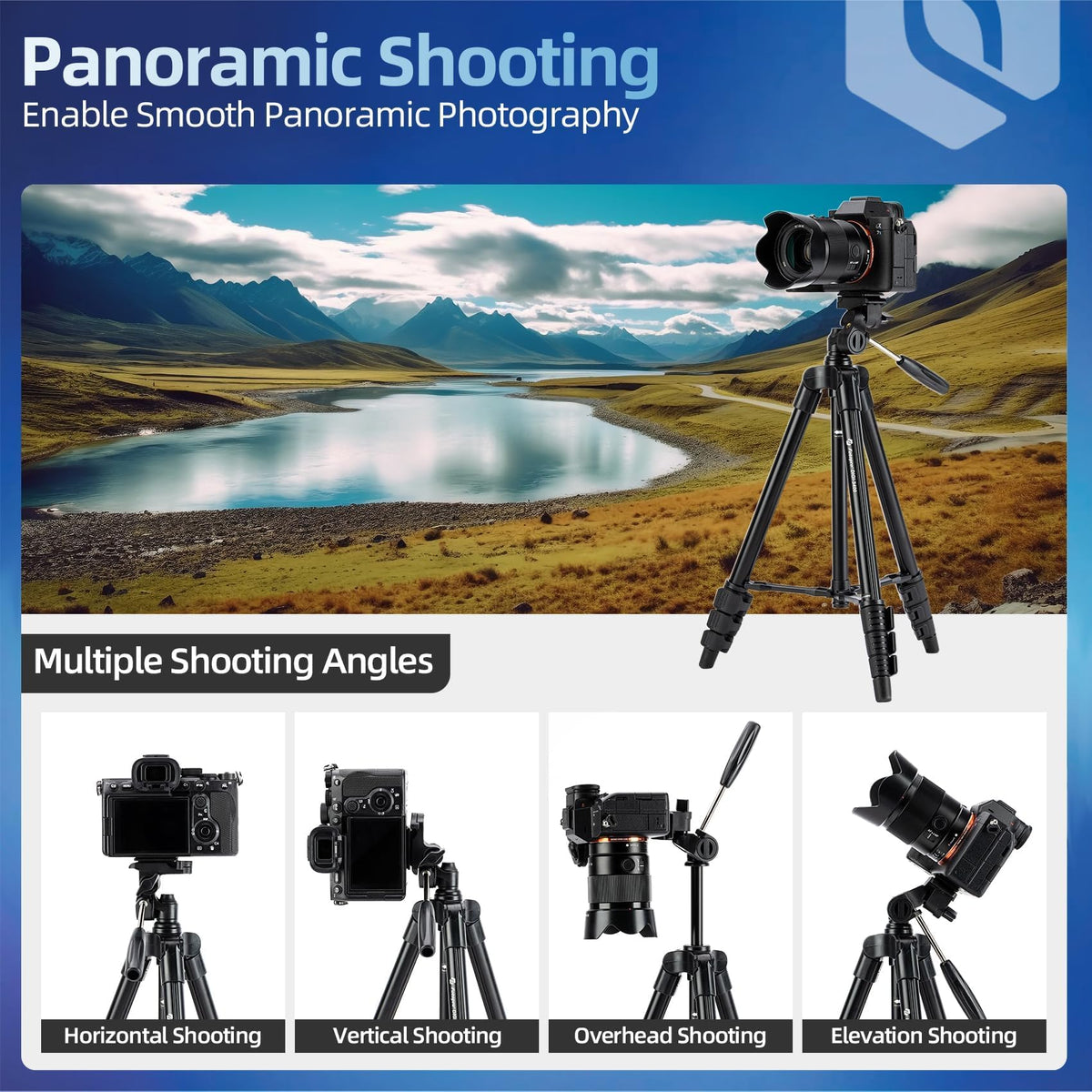 Fotopro 48 Camera Phone Tripod With 3-Way Head Phone Mount Remote Control, Aluminum Lightweight Portable Travel Tripod Stand For