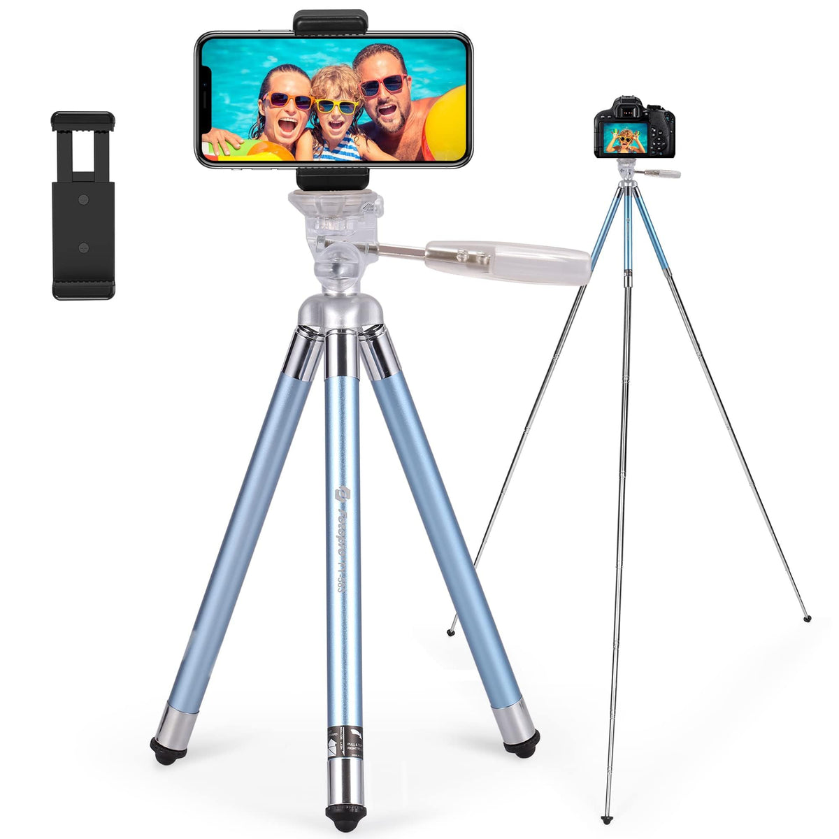 Light Up Your Life - Are You Tired Of The Black Tripod In The Market? Maybe It Wont Let You Down At This Time. Sky Blue Tripod With Transparent Pan-Head And The Sandblast Oxidation Treatment Gives Lustrous On The Surface. It Is Born To Be Eye-Catching. | Portable And Lightweight - Weight 0.85 Lb(0.39 Kg), Load Capacity: 1 Kg. The Folded Height Is As Tall As A Bottle Of Water, Small Enough To Store In Your Backpack. It Comes With A Durable Bag, Easy For Carrying While Traveling, Climbing, Camping, Etc. | Bluetooth Remote - 3-Way Head Allows Both Vertical Shooting And Horizontal Shooting For Your Preference. | Quick Setup: For Quick Setup Purpose, Tripod Legs Are Designed With Sticking Point Type Instead Of Traditional Flip Locks. Self-Contained Quick Release Plate Makes Installation Quicker. 8-Section Legs, Easy To Get The Height You Need(From 11 Inches To 40 Inches). | Lock Guide - How To Lock The Tripod: Pull & Turn Right To Lock, Turn Right A Litte Bit And Push Upward To Retract. Suitable For Most Smartphones, Webcam, Spotting Scope,And Action Cameras. Phone Clamp Suitable For Most Smartphones Within 3.3 Inches Width Or Less.