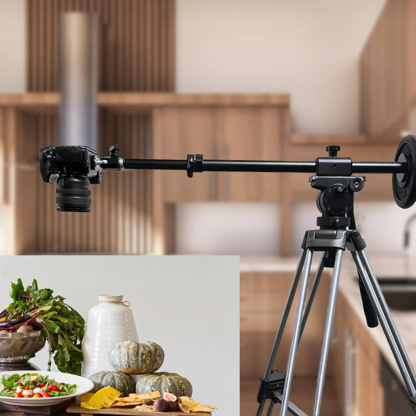 The Oh50 Allows The Camera/Bar To Be Horizontally Positioned For Overhead/Top Down Photo And Video Shots. Perfect For Product Photography And How To Videos. The Mounting Sled Can Be Mounted To Tripods With 1/4 20 And 3/8 Screws. The Mounting Sled Also Has 2 1/4 20 Holes For Mounting Lights And Monitors. Smartphone Holder And Ball Head Allows For Full Range Of Camera/ Smartphone Angles. Adjustable Length And Counter Weight Holder Allows For Extra Stable Smooth Shots! Recommended For Tripods/ Stands With Payloads Of 10Lbs Or More. For Best Results, Mount The Oh50 On A Tripod That Is Securely Seated On A Table Top That You Are Filming. Use The Ball Head To Adjust The Orientation Of Your Shot. For Cameras Without A Articulating Screen We Recommend Using A Monitor To Frame Your Shot.