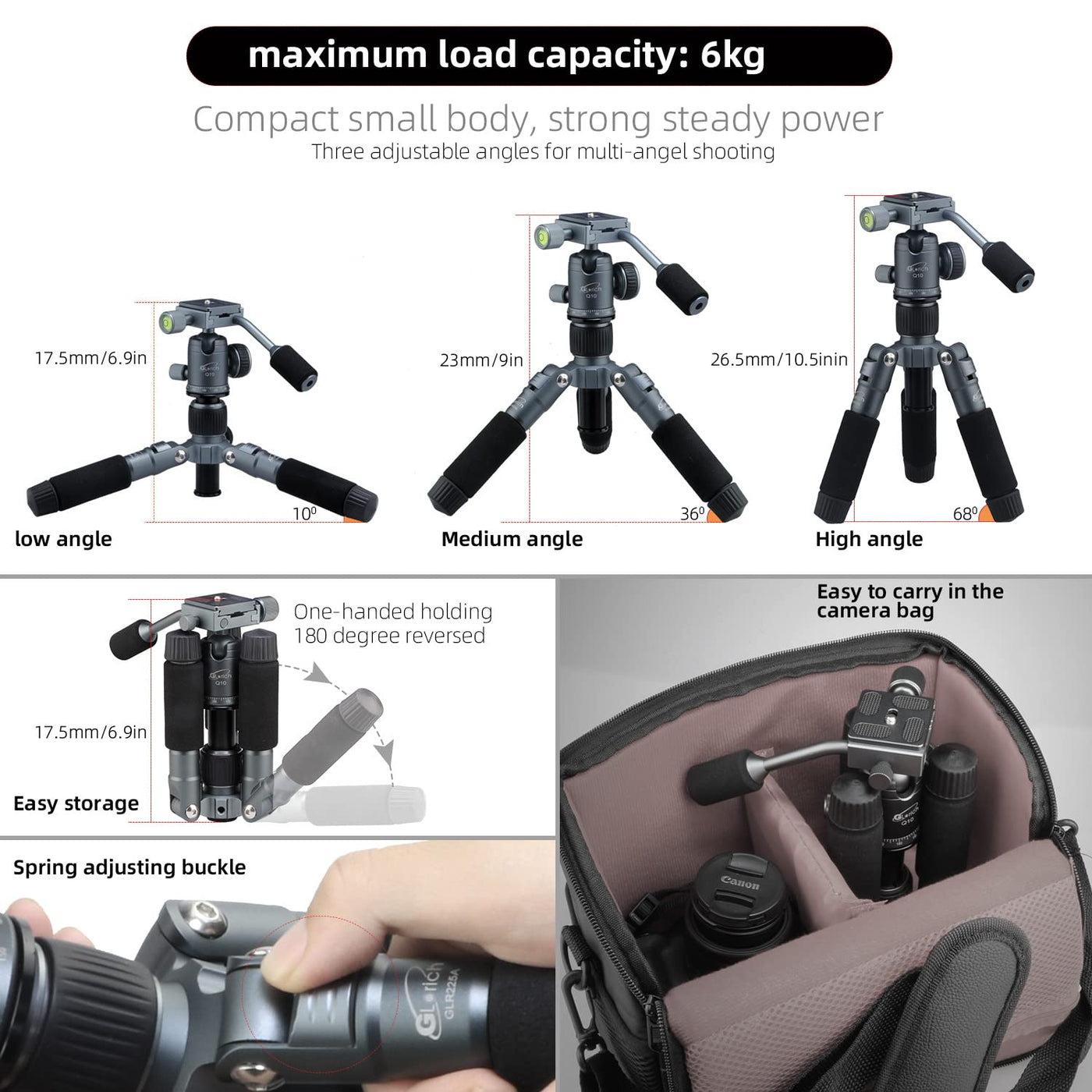 Glorich Portable Tabletop 20� Mini Tripod With 360 Degree Ball Head, Aluminum Alloy Small Travel Desktop Tripod Max Load 13 Lbs Compatible With Dslr Camera Sony Canon Nikon Video Camcorder Phones