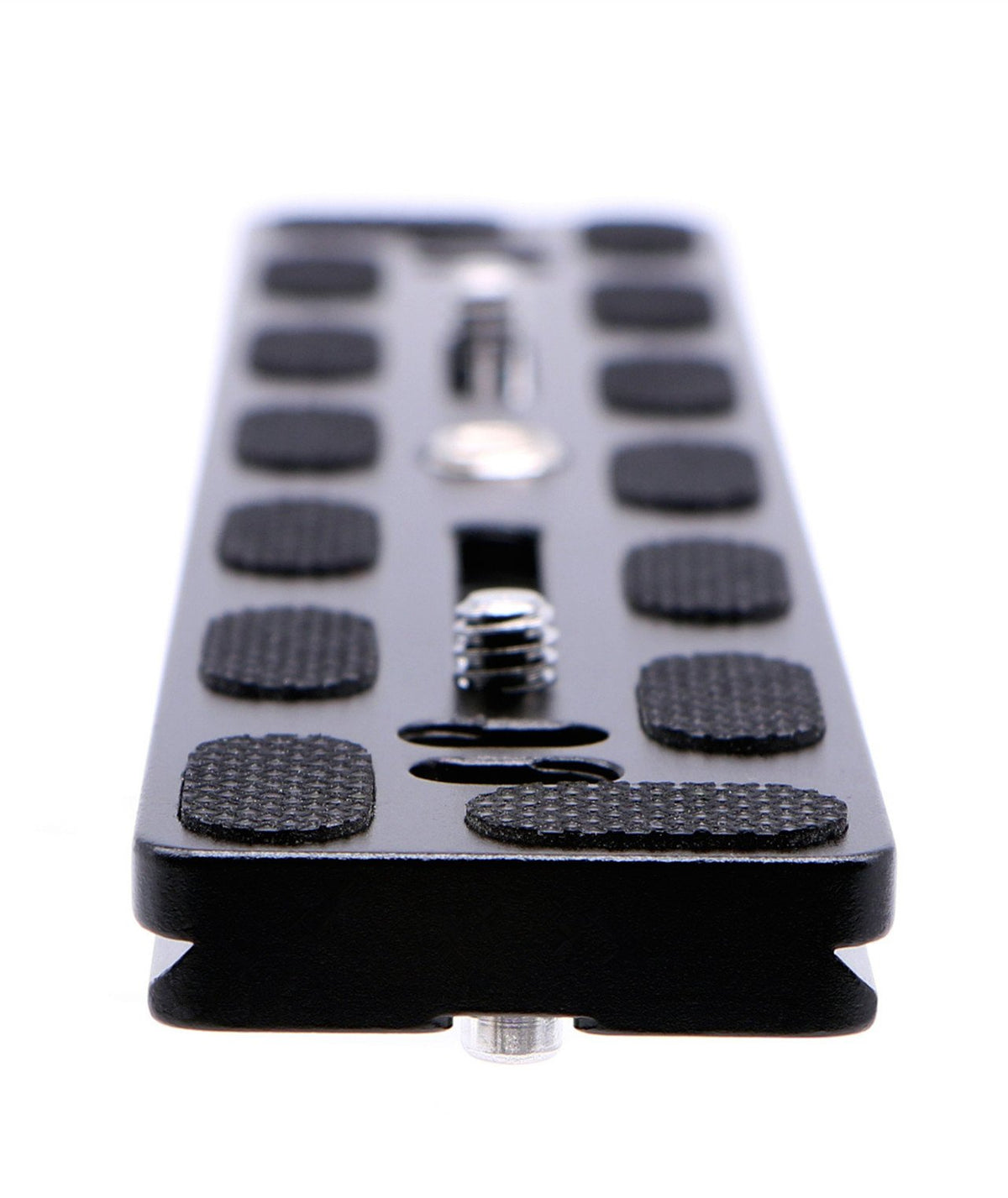 Q: What materials are used in the construction of the quick release plate?A: The quick release plate is made from solid aviation aluminum alloy, featuring a highly-precise CNC technique for enhanced durability, lightweight performance, and high corrosion resistance.