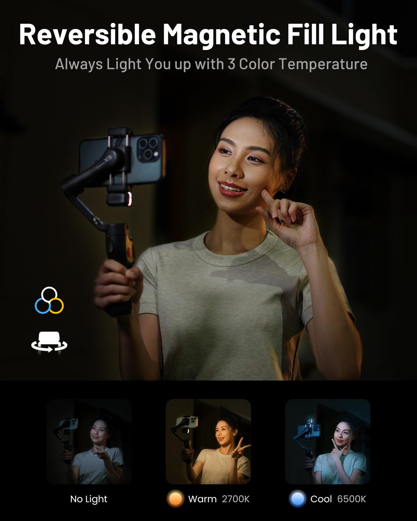 Capture Stunning Videos While Traveling With The Hohem Isteady X3! Enjoy Smooth Stabilization, A Detachable Remote, A Bright Fill Light And An 11-Hour Battery Life.