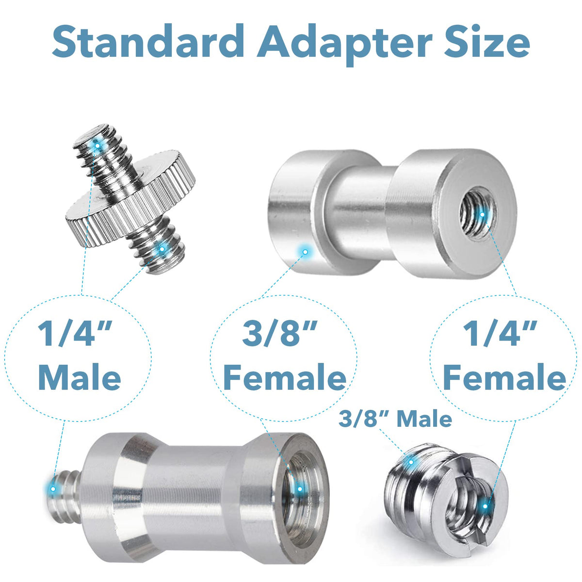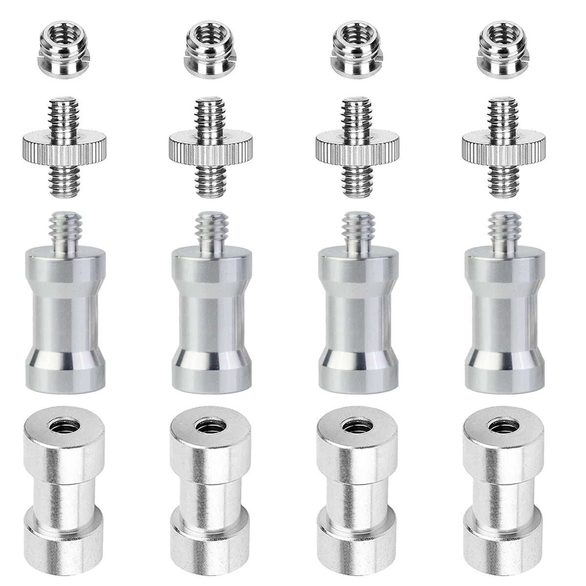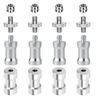 Q: What is included in the Homeet 16PCS Camera Screws Mount Set?A: The set includes 16 pieces: 4 x 1/4" female to 3/8" male screw adapter nuts, 4 x 1/4" female to 1/4" male screws, 4 x 1/4" male to 1/4" male screws, and 4 x 1/4" female to 3/8" female adapter nuts. This comprehensive collection ensures you have the necessary components for various mounting needs.