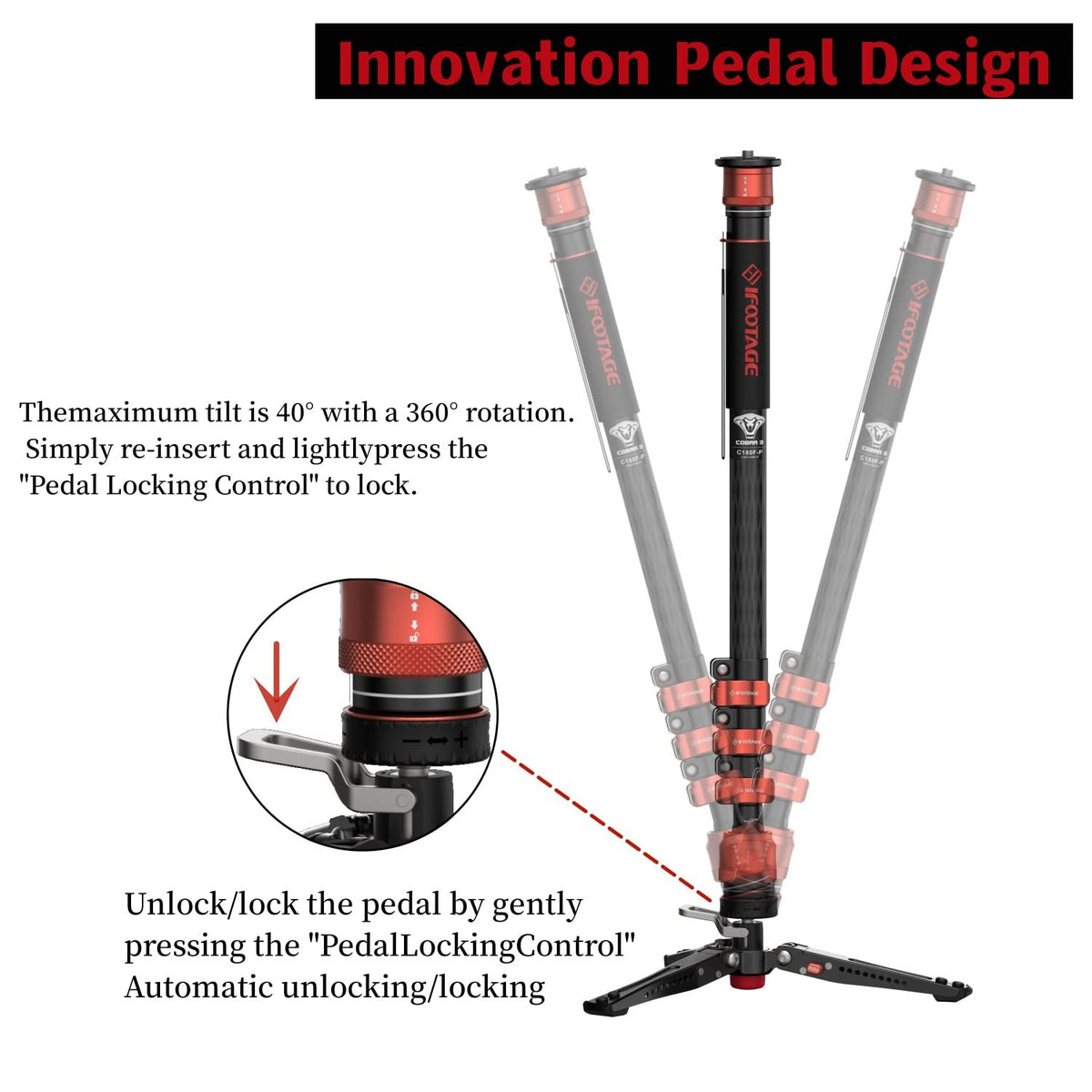 Ifootage Cobra 3 C180F P Camera Monopod With Pedal Locking Control,Carbon Fiber Video Monopod,Professional Photography Monopod S