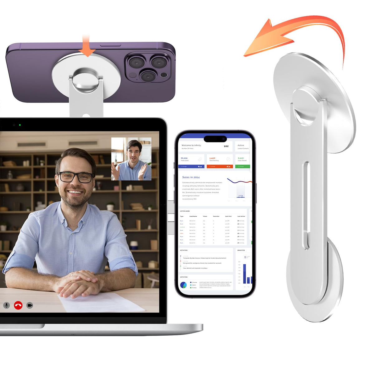 Imluckies [Upgraded] Magnetic Laptop Phone Holder, 180 Adjustable Continuity Camera Mount Clip Compatible With Magsafe For Iphon