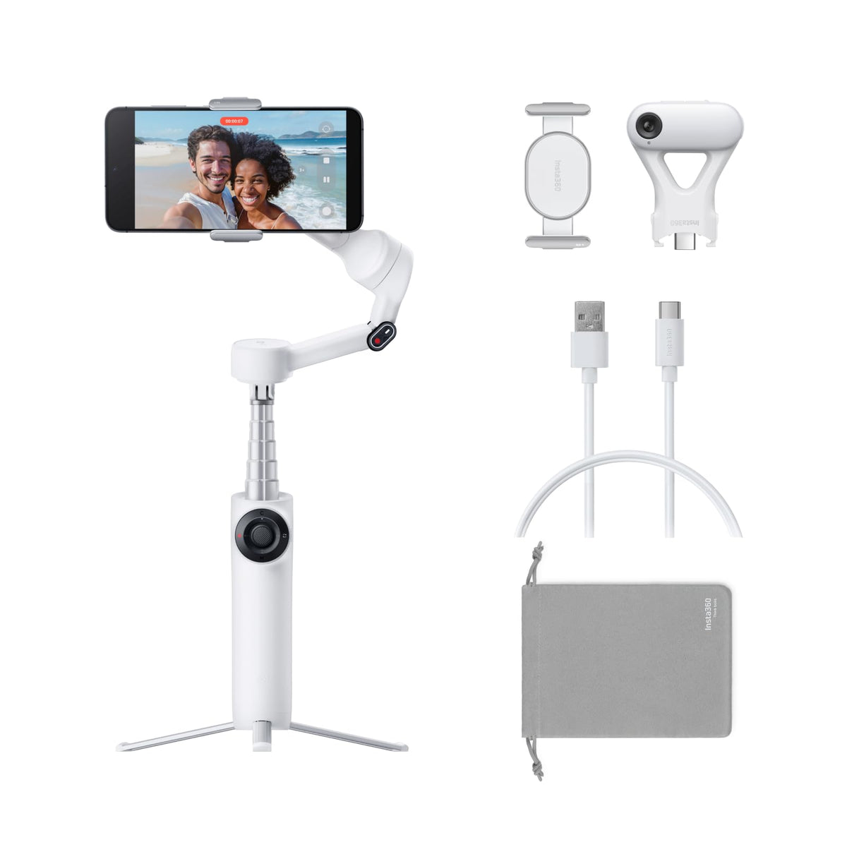 Insta360 Flow 2 Plus Ai Tracker Bundle White - Foldable Phone Gimbal, Ai Tracking With Any App, Multi-Person Tracking, Built-In