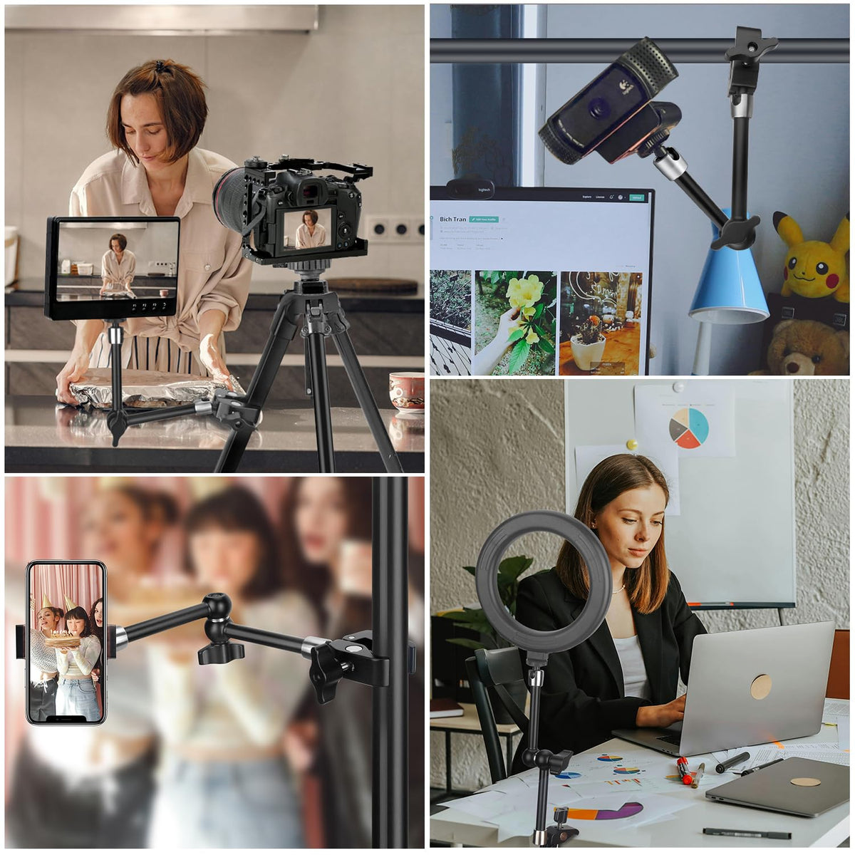 ??Product Name?? Magic Arm Clamp Kit, Camera Mount 10Articulating Friction Arm W Super Clamp, W 1/4-20 Screw And 3/8Thread Hole, Overhead Phone Mount,Overhead Phone Mount For Camera, Light, Monitor, Webcam Or Action Camera =2.5Kg Smallrig Kbum2732B 4454 4766 ??Anti-Deflection Design & More Stable ?? The Crab Camera Mount Clamp And Magic Arm Feature An Integrated Anti-Deflection Design At The Connection Point, Enhancing Reliability. It Is More Reliable Than The Old Version. With No Loosening During Use, You Can Focus On Your Creative Work. ??Adjustable Super Camera Mount Clamp??The Crab Clamp Can Open Up To 50Mm And Features Friction Pads, Suitable For Clamping Onto Regular Desktops As Well As Round Tubes Like Tripods, Stabilizer Handles, Light Stands,Pole And More. ??Versatile, Also Easy To Use?? Adjust The Device Flexibly To The Desired Position With Just 1 Knob, Recommended Load Capacity Of 5.5Lb/2.5Kg, Designed With 1/4 Screw Suitable For Small Cameras, Monitors, Video Lights, Webcams, Action Cameras, Microphones, Etc. ??Rock-Solid?? Camera Arm Mount Entire Kit Is Made Of Aluminum Alloy And Stainless Steel, And Has Undergone Rigorous Durability And Vibration Testing. You Can Confidently Add It To Your Creative Tools, Making It Perfect For Photography Enthusiasts. ??Cushions Are Important?? There Are 2 Cushions On The Crab Camera Clamp And 1 Circular Rubber Pad At The Top Of The Magic Arm. These Cushions Not Only Increase Friction But Also Protect The Equipment And The Clamping Area From Wear.