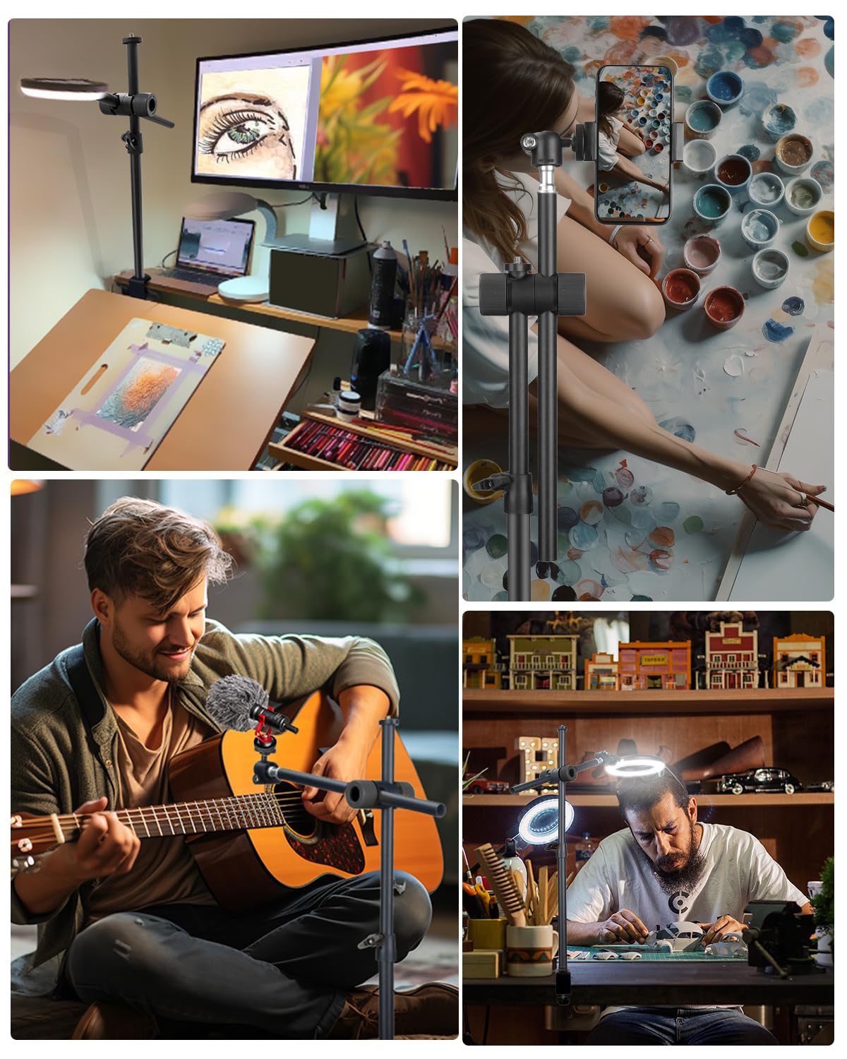Jebutu Overhead Camera Mount Desk Stand With 360Adjustable Holding Arm, Camera Mount Boom Arm Stand, Webcam Desk Mount With Magi