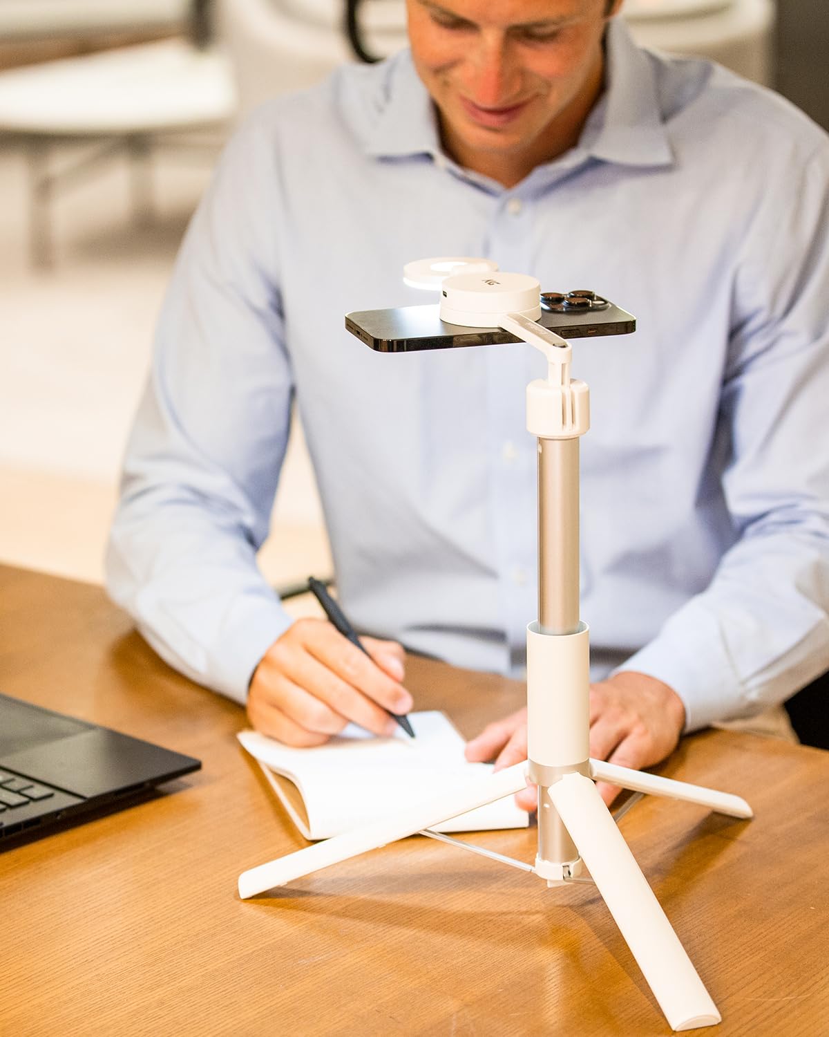 Q: What features make this tripod ideal for content creators?A: The KraftGeek Magnetic Selfie Stick Tripod features an adjustable MagSafe mount that tilts up to 210° and allows 360° rotation, providing flexibility for diverse shooting angles. Additionally, it comes with a detachable Bluetooth remote for capturing photos from a distance.