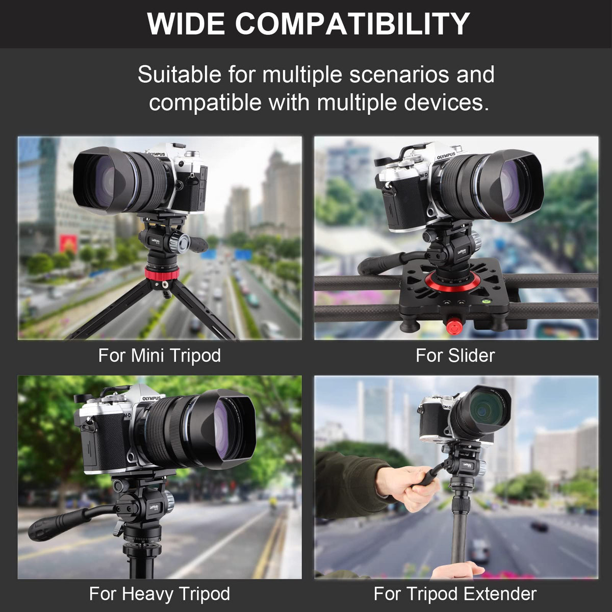 Q: Is the LEFTFOTO tripod head compatible with all cameras?A: Yes, the LEFTFOTO Mini Tripod Fluid Head comes with an Arca Swiss quick release plate, which ensures compatibility with most DSLR cameras, camcorders, and other light gear.