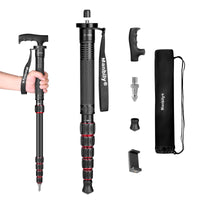 Q: Can the monopod be used as a trekking pole?A: Yes, the Manbily A-555L monopod can be converted into a trekking pole by attaching the included handle, making it versatile for both photography and outdoor activities.