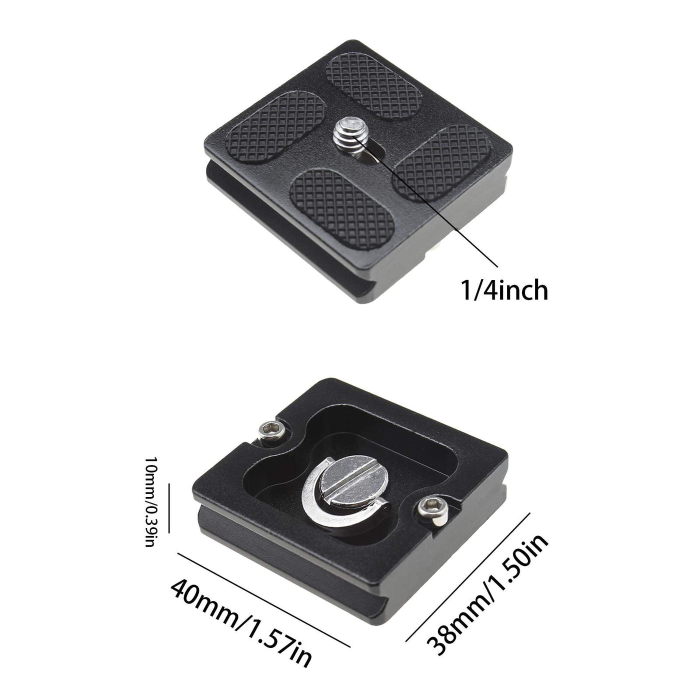 Item Descriptions:-[Dimension]: Length: 40Mm, Width: 38Mm, Height:10Mm, Thread Size: 1/4Inch.-[Application]: Compatible With 1/4Inch Camera Screws, You Can Adjust The Position Of The Screw To Fit For The Different Cameras.-[Anti-Slip Design]: Anti-Slip Rubber Pads On The Surface Increase Friction And Improve Stability.-[Safety Screws]: The Safety Screws Are Installed On Both Sides To Protect Your Camera From Accidental Drops.-[Durable Material]: Aluminum Alloy Material, Light Weight But High Support Strength.-[Safe To Use]: The Rounded Edge Design Provides A Safer User Experience.Package:2Pcs 40Mm Quick Release Plates(Note: Other Accessories Are Not Include.)Item Specifications:Main Material:Aluminum Alloysize:40X38X10Mmthread Size:1/4Inchcolour:Blackquantity:2Pcsmpn:[Auto Fill Ean]
