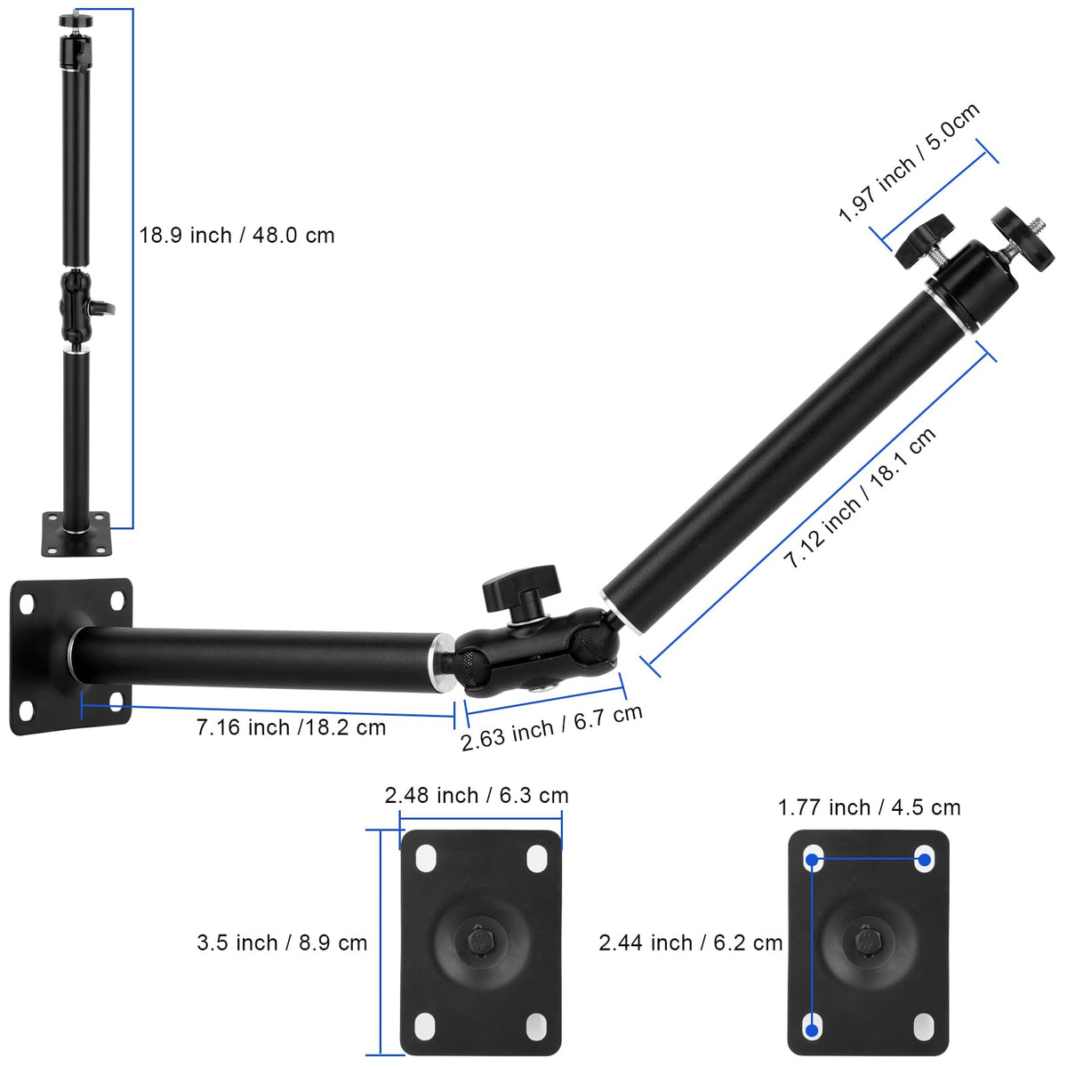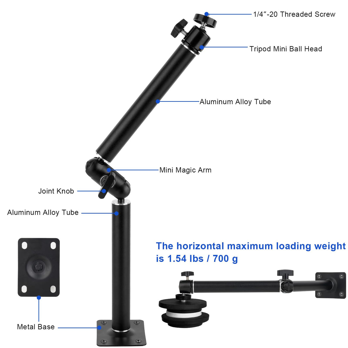 Mippko Articulating Wall Mount Camera Arm With 1/4 Inch 20 Threaded Compatible With Digital/Security/Webcam/Cctv Pov Camcorder/Video Light/Small Cameras,Adjustable Aluminium Alloy Arm