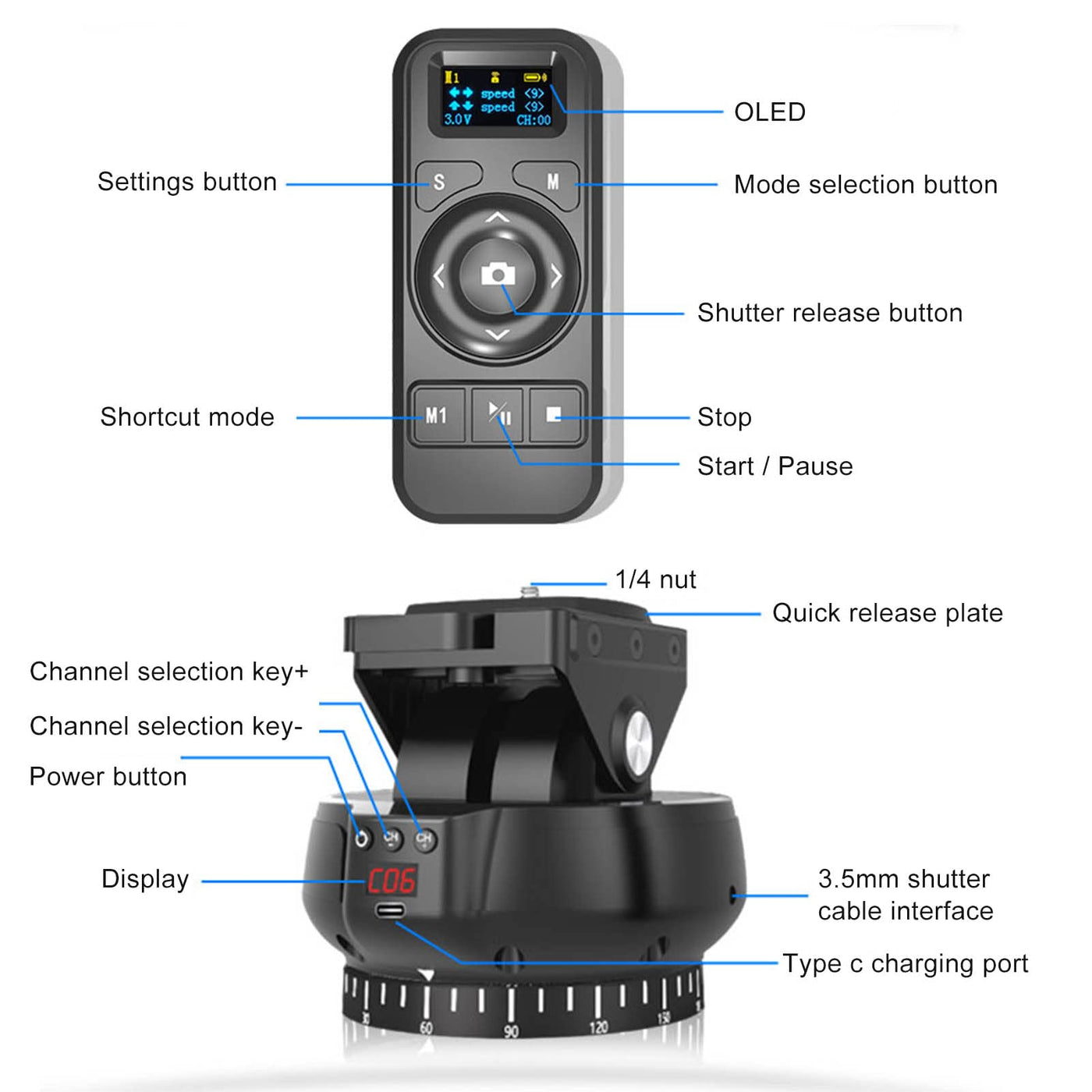 Motorized Panoramic Tripod Head, 2.4G Electronic Camera Tripod Head + 360
