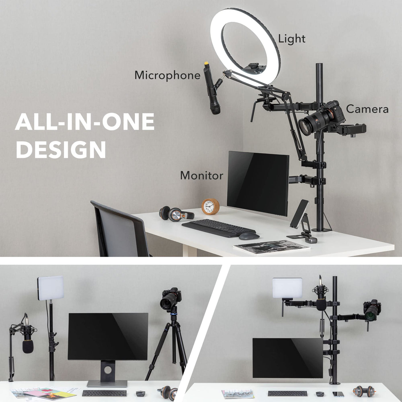 Mount-It! Selfie Video Set ''Made By Creators, For Creators'' Tired Of Looking Fuzzy On Zoom Calls?Ready To Look Like A Pro Broadcaster Every Time You Hop On A Stream? Then It'S Time You Implemented Our Video Recording Setup. When You Research ''Home Office Setups'' Or ''Streaming Setups'' You'Ll Find Diy Tutorials Showing You How To Build A Live Broadcast Desk Stand. Why Spend All The Money On Doing It Yourself When We Already Built It For You... At A Much More Reasonable Price? Our Desk Video Recording Setup Has 4 Mounts For Everything You Need Most.- Monitor Mount To View Yourself And What'S Happening Live Online - Mic Arm To Make Your Voice Sound Clear And Powerful- Camera Arm For Your Dslr. Look Professional, Feel Professional- Light Arm To Capture The Best Lighting That Portrays Your Greatest Facial Angles And Features There Are No More Excuses. Every Professional Working From Home Or In Their Own Private Studio Absolutely Must Have Our Desktop Recording Mount If They Want To Look Their Best.