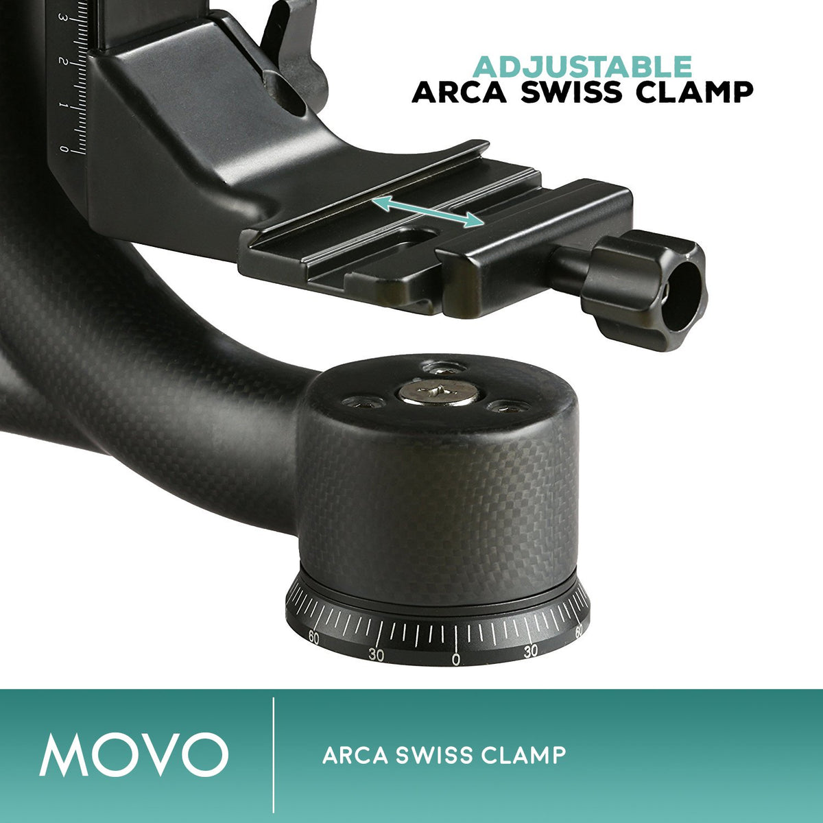 Movo Gh800 Carbon Fiber Professional Gimbal Tripod Head With Arca-Swiss Quick-Release Plate - For Outdoor Bird/Wildlife Photogra