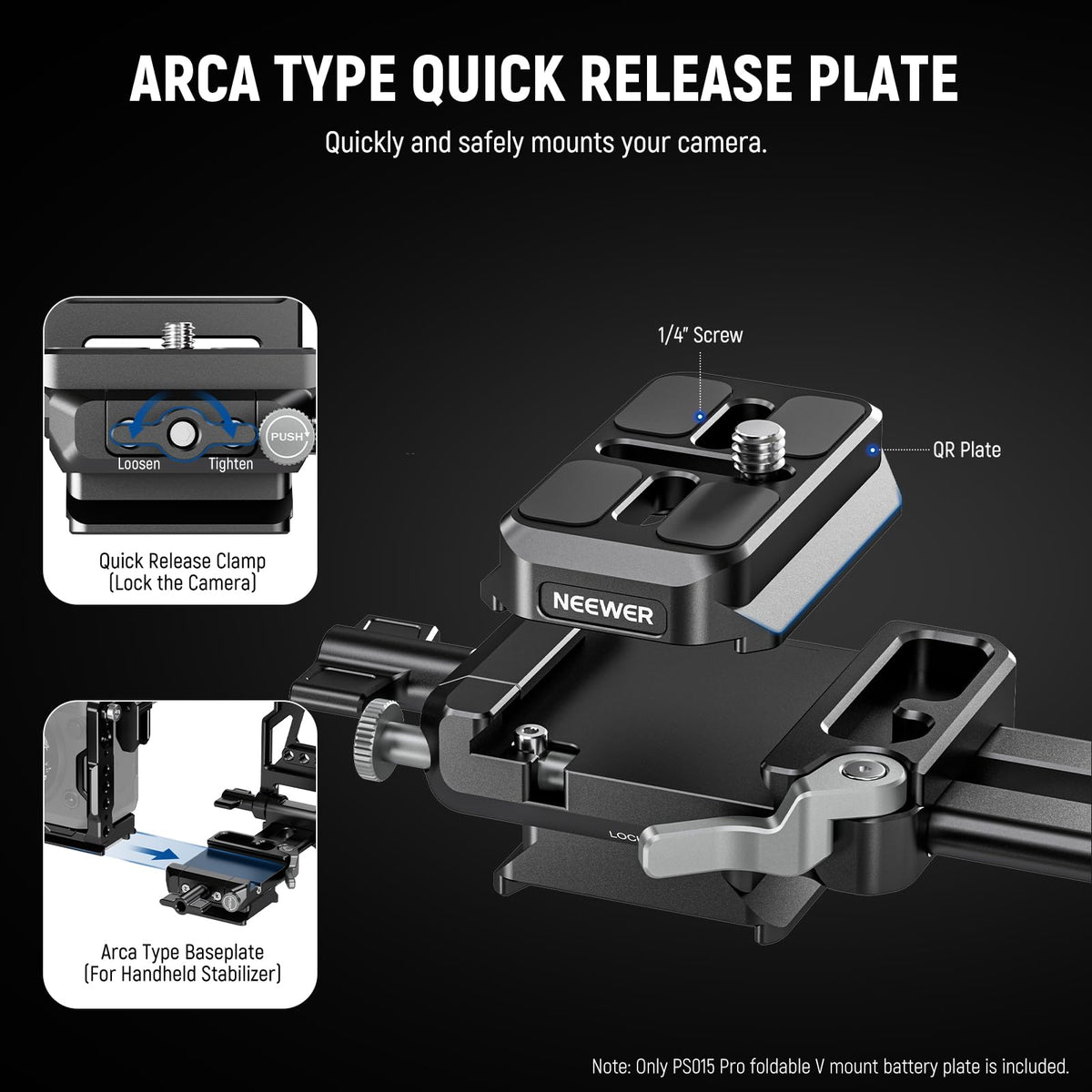 ?Foldable V Mount Battery Plate? This Compact And Lightweight V Mount Battery Plate Simultaneously Mounts A Camera And A V Mount Battery. It Has A Quick Release Button For Fast Installation And A Detachable Mini V Mount Adapter That Can Make Any 1/4 Threaded Accessory, Such As An Np-F Battery Adapter Plate, Work With The V Lock System. Compatible With Smallrig Small Rig V Lock Battery | ?Double Arca Type Qr Mounts? The Battery Mounting Plate Clamp Features An Arca Type Quick Release Plate For Various Cameras And An Arca Type Base With 1/4 And 3/8 Threads For A Wide Range Of Tripod Heads. A Retractable Anti Off Pin Can Prevent The Camera From Falling | ?Seamless Equipment Transition? Compatible With Dji Rs4 Rs 4 Pro Rs3 Rs 3 Pro Rs 2 Rs2 And Rsc 2 Rsc2 Handheld Stabilizer Gimbals, The Arca Type Base With Anti Off Hook Accessories Can Attach To The Gimbals From The Left Or Right And Seamlessly Transfer To A Tripod For Stable Video Recording | ?Extendible Camera Baseplate? The 1.4/36.5Mm Extendible Camera Baseplate Accessory Is Compatible With Canon R5C R100 Eos R50 Compatible With Sony Fx3 Fx30 Alpha A9 A7S A7R A7Cr A7C A6700 Zv-E10 Zve10 Compatible With Nikon Zf Zfc Z30 Z9 Compatible With Fujifilm X100Vi Fuji X-S20 X-T5 X-H2S Compatible With Panasonic Lumix Gh6 S5 Iix Compatible With Blackmagic 4K 6K And Other Dslr/Mirrorless Digital Cameras | ?180