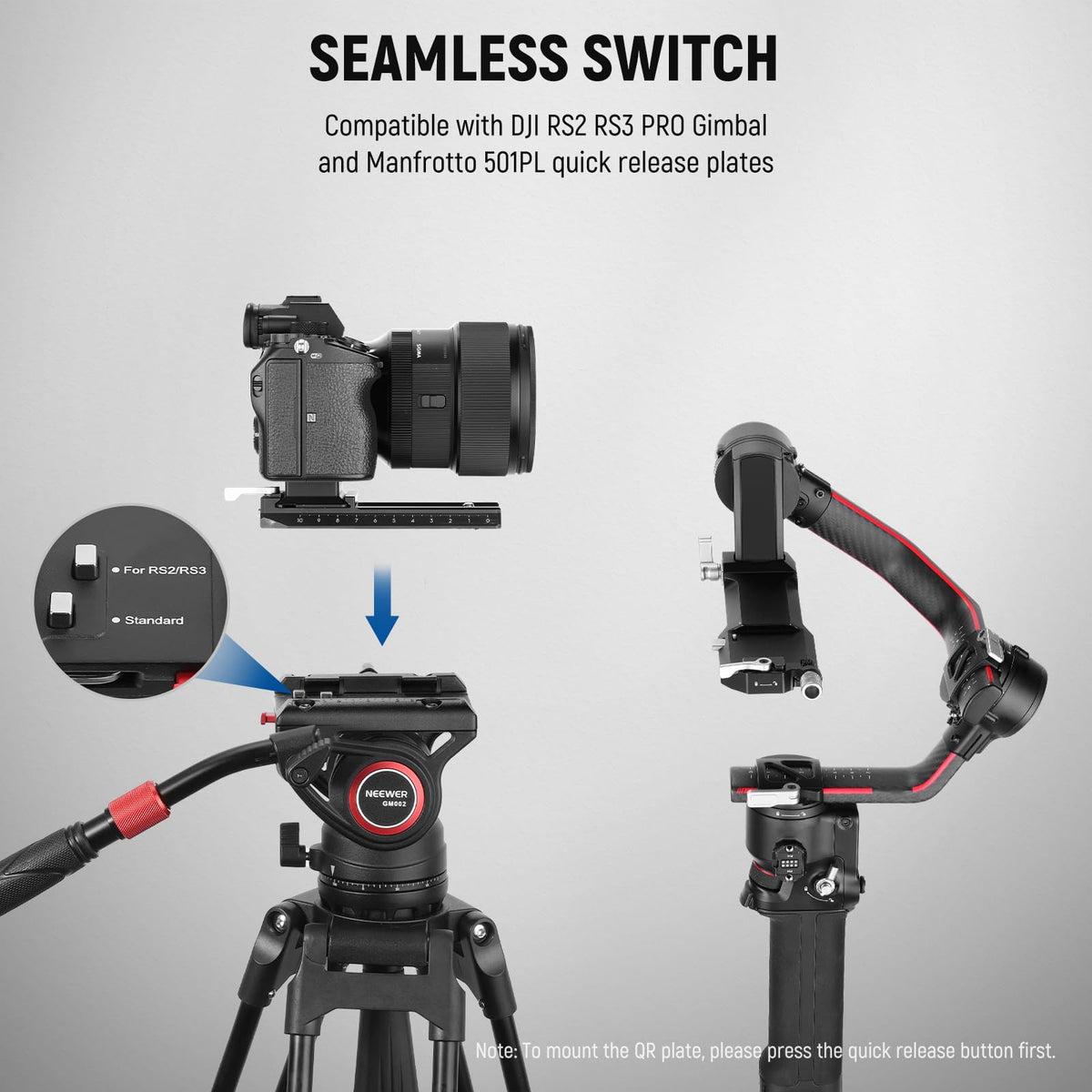 ?Premium Fluid Drag Pan Head? Exceptionally Robust, This Professional Fluid Drag Pan Head With Built In Damping And Balancing System Is Made Of Premium Aluminum Alloy That Can Withstand Harsh Outdoor Environments And Offer A Maximum Load Capacity Of 17.6Lb (8Kg)- Perfect For Taking Sharp Images And Smooth Videos | ?Quick And Easy Modes Switching? The Fluid Head Has Two Qr Modes, Compatible With Dji Rs2 Rs3 Rs3 Pro Gimbal And 501Pl Quick Release Plates Respectively. Compared To The Traditional Slide In Structure, You Can Press The Quick Release Plate Directly From The Top Of The Fluid Head And Lock It In 1S, As Well As Quickly Release The Plate Via The Side Release Button, More Efficient And Convenient To Switch Between Tripod And Gimbal Shooting For Photography And Videography | ?Smooth Panoramic Movement? The Pan Base With 360