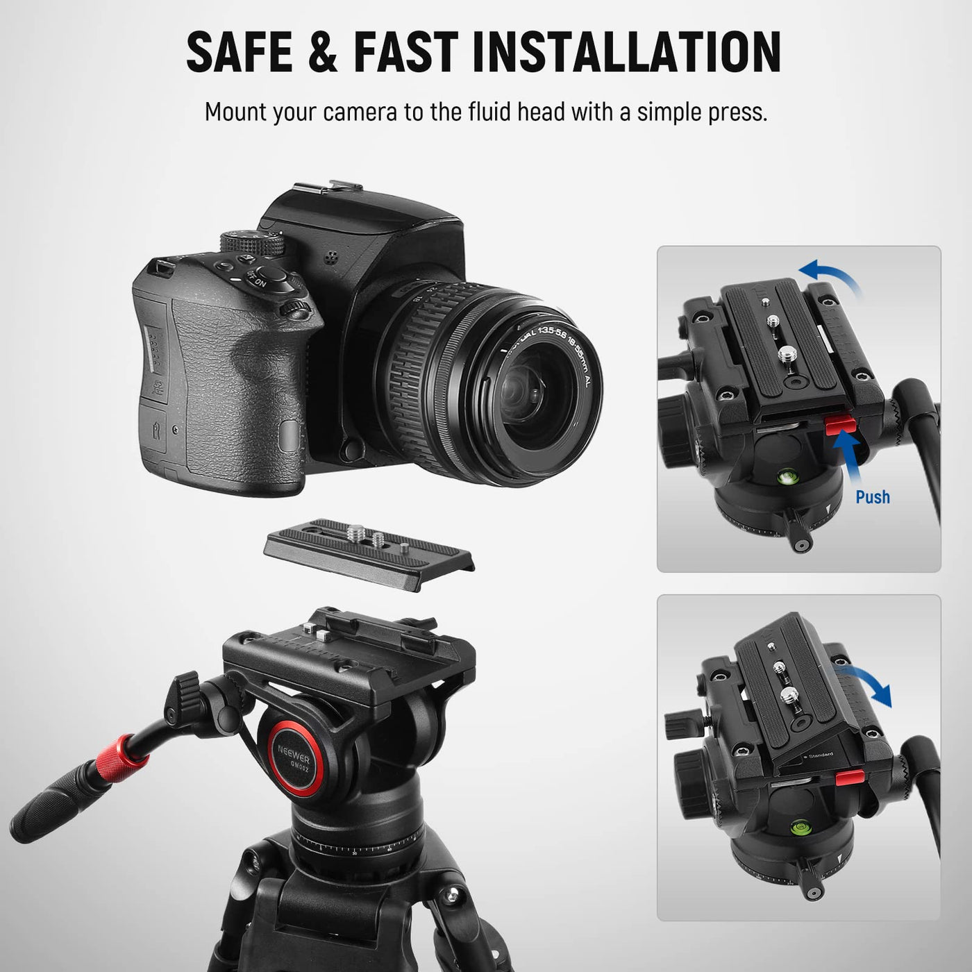 Neewer Video Tripod Fluid Head With Quick Release Plate, Telescopic Handle & Scaled Base (75Mm Dia.) Heavy Duty, Max Load 17.6Lb