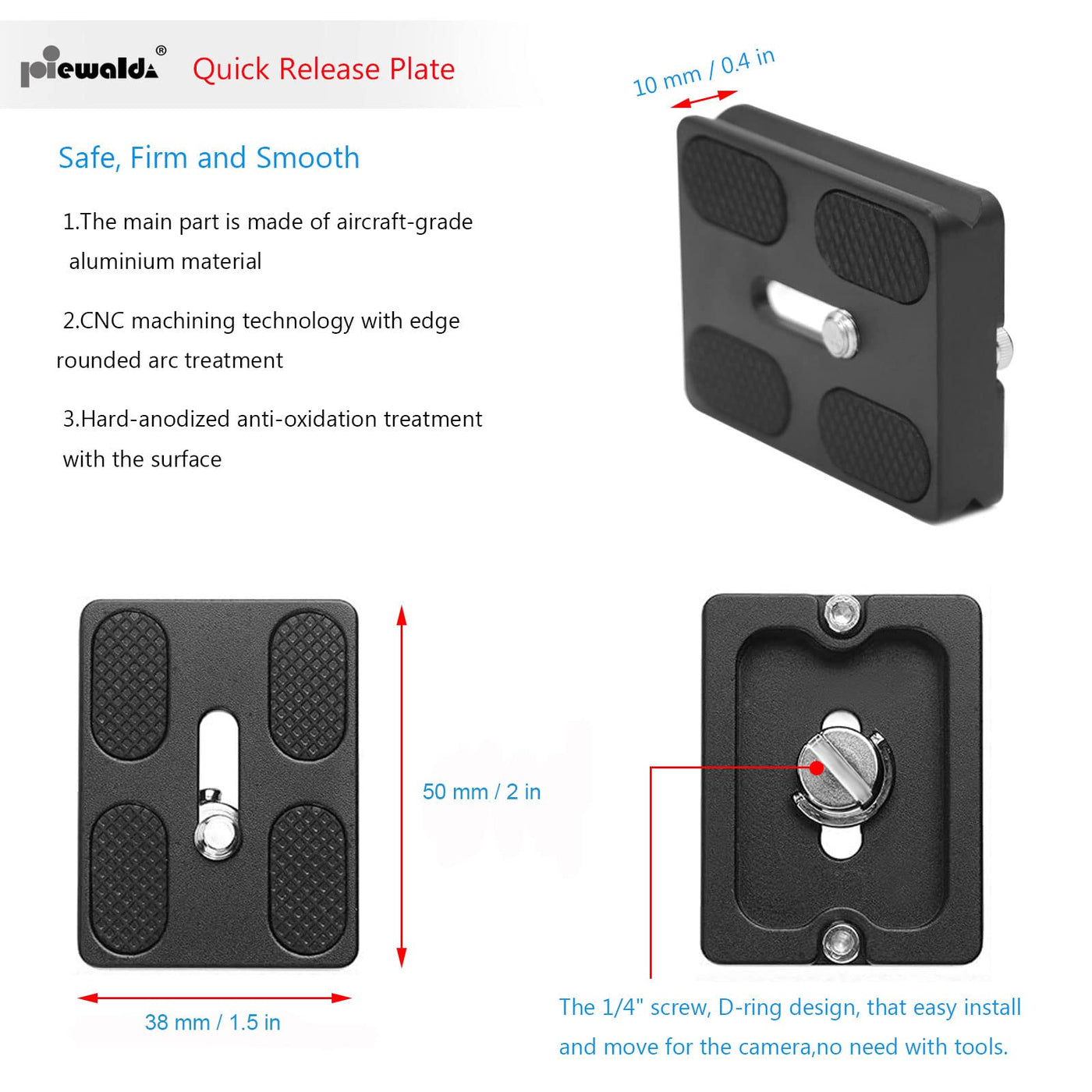 Niewalda Universal Tripod Quick Release Plate, Quick Release Plate, Arca Swiss Plate With 1/4 Inch Slotted Screw, C Ring/D Ring Screw, 1/4' 3/8' Screw, For Dslr Camera Tripod Ball Head(Pu 50)