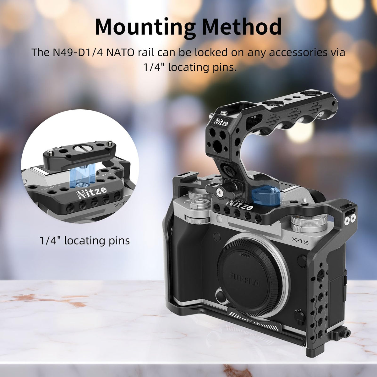 Q: What materials is the Nitze NATO rail made from?A: The Nitze N49-D1/4 NATO rail is primarily made from high-quality materials to ensure durability and reliability. However, specific material details are not disclosed. It is designed to withstand the rigors of professional video production.