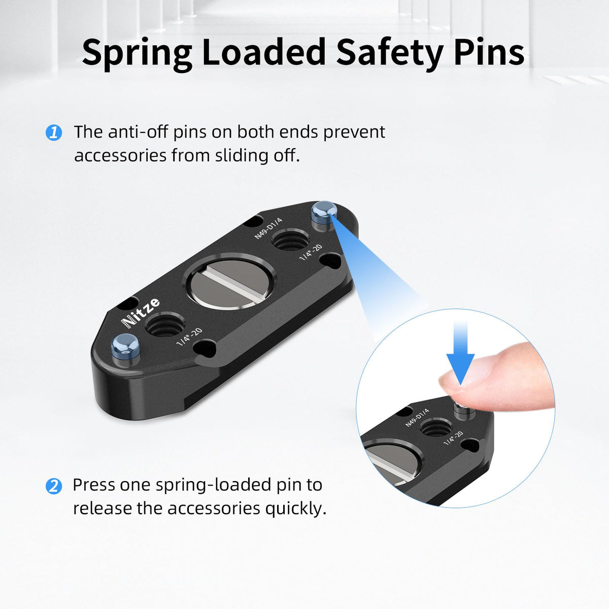 Q: How does the anti-off design of the Nitze NATO rail work?A: The Nitze NATO rail features a spring-loaded anti-off design with pins on both sides, which prevents your accessories from slipping off accidentally during use. This ensures a secure attachment for all compatible accessories.