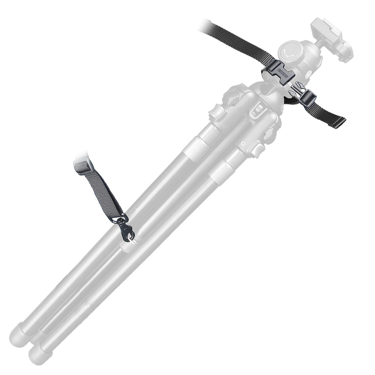 Q: How does the quick disconnect feature work on the tripod strap?A: The quick disconnect feature securely fastens around the head of the tripod, allowing for easy attachment and removal. This functionality is especially useful for photographers who need to transition quickly between carrying their tripod and taking shots.