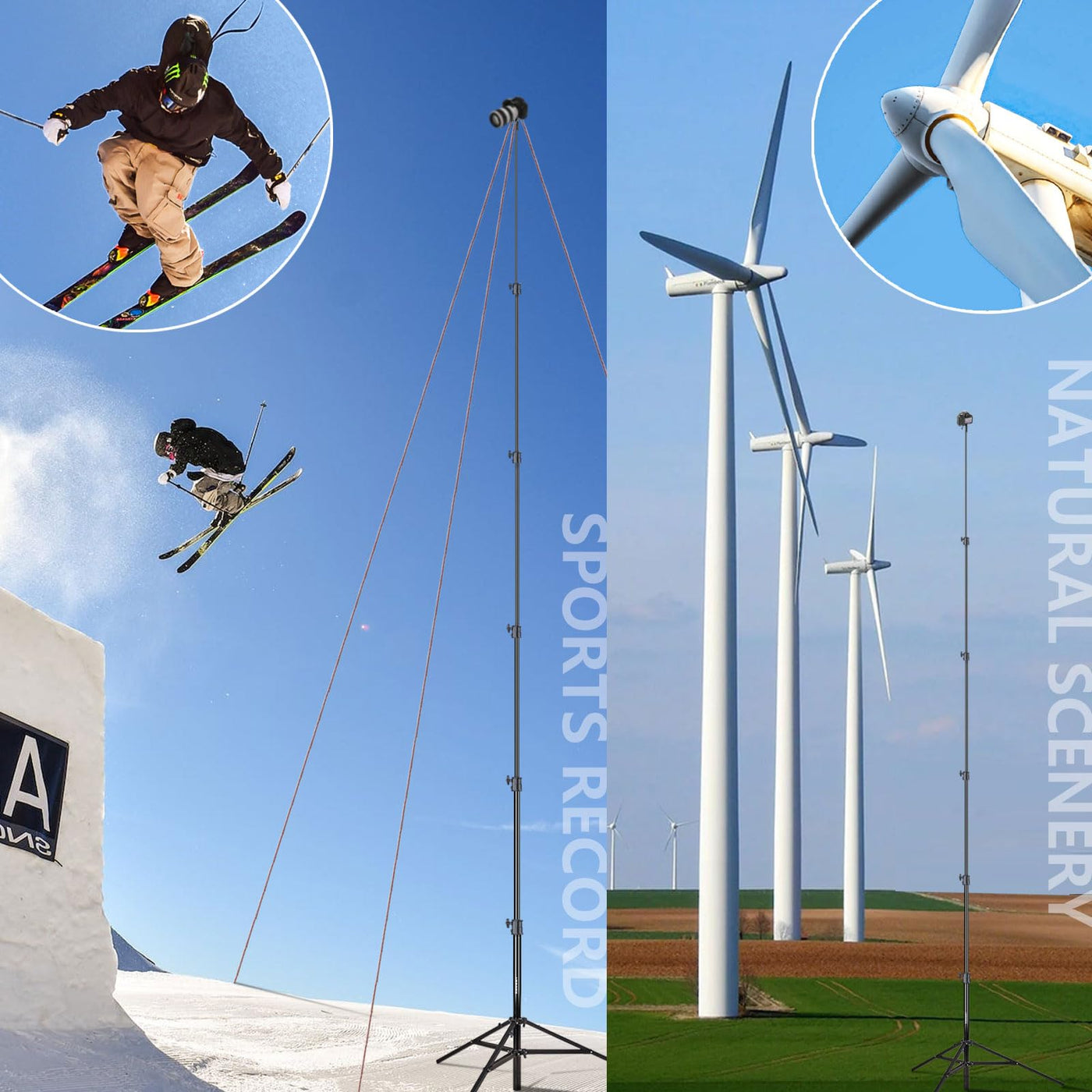 Raubay 24' Tall Tripod Stand, Extreme Tall Heavy Duty Sports Camera Video Tripod, Spring Telescoping Aluminium Alloy Large Light