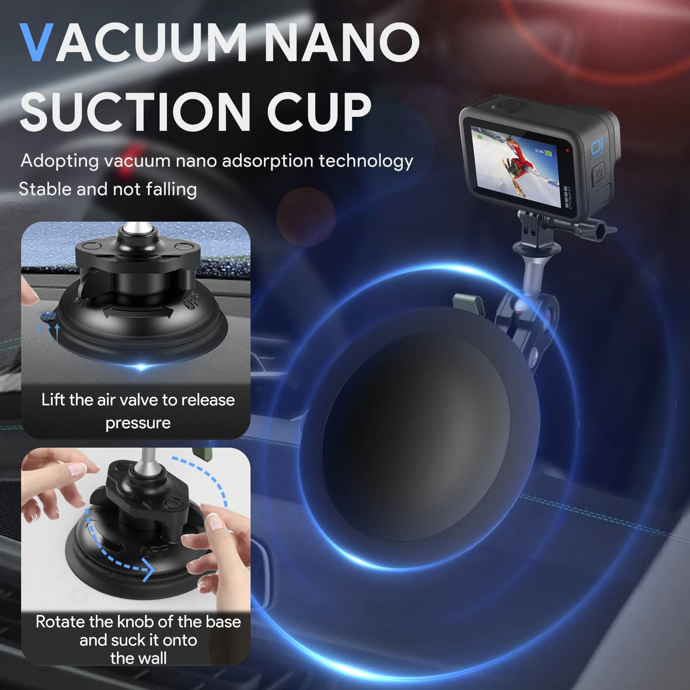 Reygeak Suction Cup Mount With A 360 Rotatable Detachable Metal Made Tripod Ball Head Mount, Built With 1/4 ''Screw, Can Adjust The Angle According To Different Usage Scenarios And Shooting Needs. Double Ball Head Structure, With Rubber Ring In The Middle Of The Ball Head To Increase Friction And Make The Bracket More Stable, 360 Angle Adjustment. Can Adjust The Angle According To Different Usage Scenarios And Shooting Needs. Adopts Flexible Resin Suction Cups, Large(93Mm/3.66In) Suction Force, All-In-One Design Main Body, Makes It Stable And Reliable, Rotate The Button Can Makes The Pressure Difference, Stay Stable Even At Speed Up To 120Km/H With Gopro Mounted. Suction Cup Mount Can Be Fixed On Different Horizontal Plane, For Example Curved Glass Surface, Metal Ceramic Surfaces, Car Windscreen/Windshield, Plate Glass Door, Car Door, Car Hood, Car Top Roof, Trunk Lid,Car Window Etc.. With Phone Clip Wide Compatibility, Works With Dji Osmo, Gopro Hero 12, Hero 11, Hero 10, Hero 9, Hero 8, Hero 7, Hero 6, Insta360 One X3, Insta360 One X2 Rs, Insta360 G03, One R, And Other Action Cameras, Iphone Cellphone, Mobile Phone, Microphone, Photography Camera Video Lights, Sony Nikon Canon Slr Mirrorless Cameras Etc.