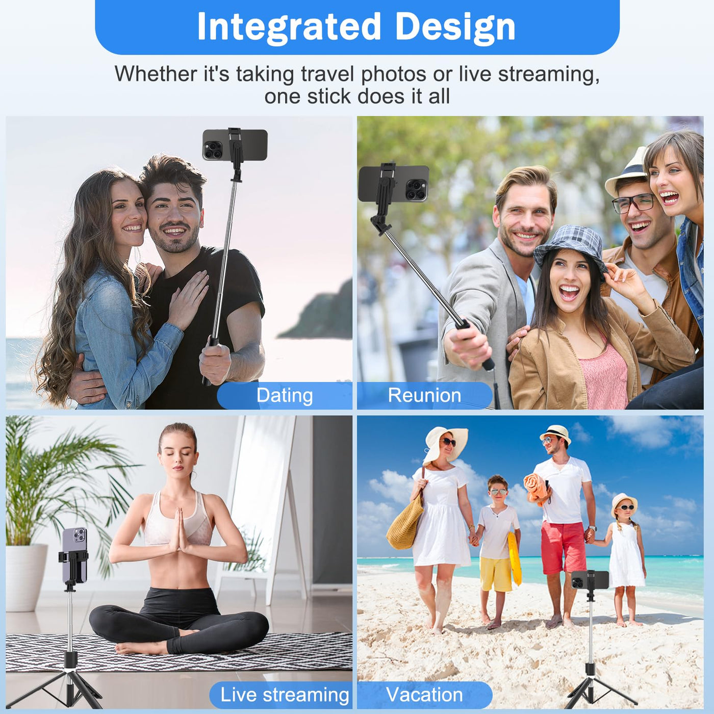 Versatile And Ultra - Portable Selfie Stick Tripod:This Isnt Just An Ordinary Apple Selfie Stick; Its Your All - In - One, Lightweight, And Portable Companion For Every Moment. Whether Youre Live - Streaming, Shooting Short Videos, Recording Your Daily Life, Having A Family Reunion, Or Exploring The Great Outdoors, Its Compact Design Makes It A Breeze To Store In Your Bag And Carry Around. | Adjustable Double Fill Light For Stunning Shots: Get Ready To Up Your Photo And Video Game With Two Fully Adjustable Fill Lights. These Lights Can Be Rotated A Full 360