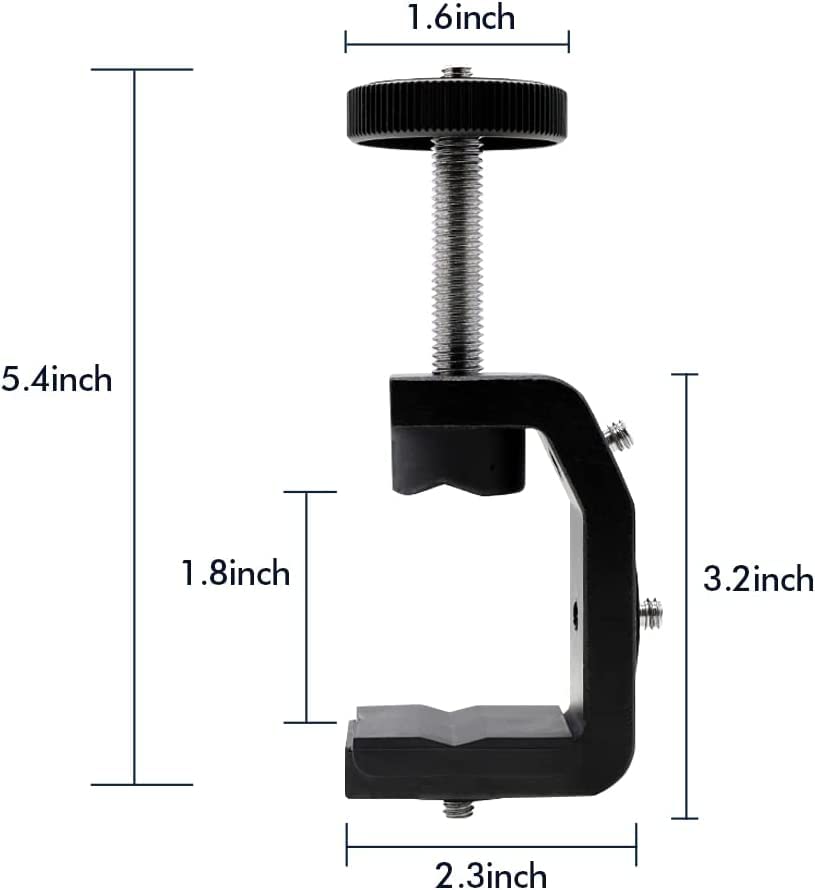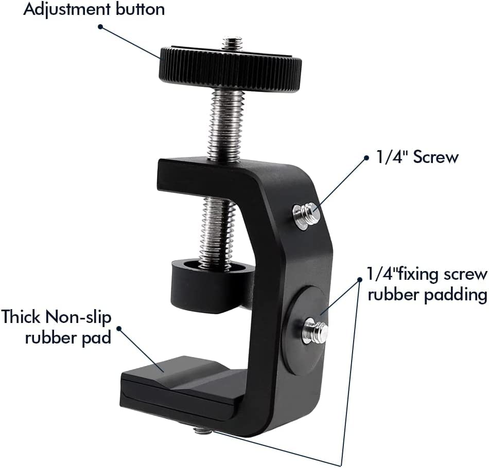Slow Dolphin Photography C Clamp Features: Wide Range Of Uses .Come With Four 1/4' Screw Meeting Several Different Direction Shooting Needs. The Non-Slip Rubber Pad Avoid Your Application From Slipping And Scratching. Adjustable C Clamp Jaw. The Max Is 1.8Inch Suitable For The Desk Or Tube Within 45Mm Thickness. Heavy Duty C Mount Clamp Made Of High-Quality Aluminum Alloy & Stainless Steel, Sturdy And Durable.