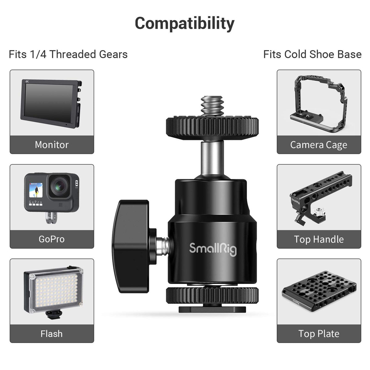 Smallrig 1/4 Camera Hot Shoe Mount, Ballhead Tripod With Additional 1/4 Screw, 2Pcs Pack - 2059