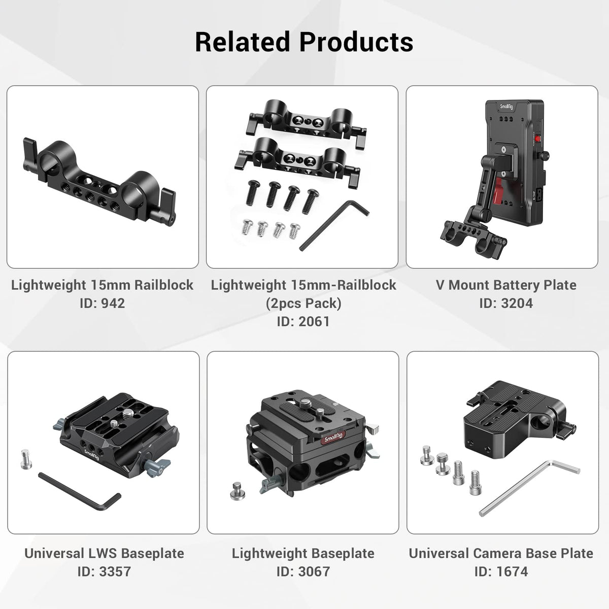 Q: What types of equipment are compatible with the SMALLRIG 15mm Rods?A: These rods are primarily used in camera riser systems and are compatible with various filmmaking accessories, including matte boxes, follow focuses, and lens supports.