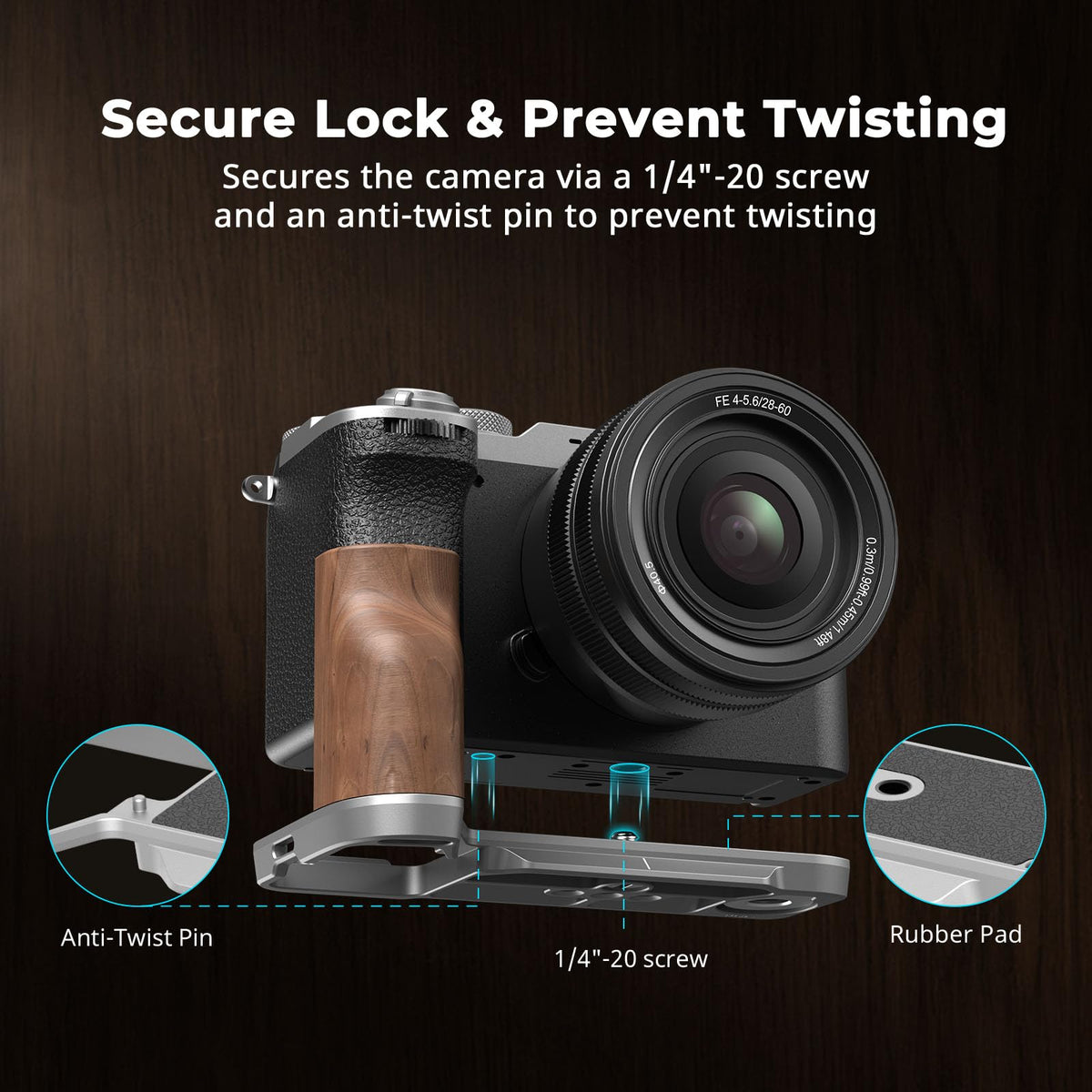 Smallrig L-Shape Mount Plate With Wooden Handle For Sony Alpha 7C Ii / Alpha 7Cr 4796B Key Features: 1. Ergonomically Shaped Wooden Grip For Better Grip 2. Wooden Handgrip, Elegance With A Rich, Natural Feel 3. Quick Release Plate For Arca-Swiss On The Bottom For Easy Tripod Mounting For Arca-Type 4. Lightweight, Compact, And Portable, It Weighs Only 73.2 Grams / 2.58 Ounces Product Description: Smallrig L-Shape Mount Plate With Wooden Handle For Sony Alpha 7C Ii / Alpha 7Cr 4796B Is Designed To Improve The Camera Grip. The L-Shape Grip Mounts To The Camera With A 1/4-20 Screw At The Bottom, And The Built-In Silicone Pads Prevent Scratches. The Handgrip Is Made Of Natural Solid Wood, Elegant With A Rich, Natural Feel, And Designed Ergonomically To Enhance The Grip Feeling. The Built-In Quick Release Baseplate For Arca-Swiss Allows For Easy And Fast Tripod For Arca-Type Assembly And Disassembly, While A Strap Hole Is Compatible With Wrist Straps (Id 3848), And A Magnetic Spanner For Easier Disassembly And Assembly. Compatibility: For Sony Alpha 7C Ii For Sony Alpha 7Cr In The Box: L-Shape Mount Plate X 1 Specifications: Product Dimensions: 125.4 X 68.5 X 62.6Mm / 4.9 X 2.7 X 2.5In Package Dimensions: 162.0 X 122.5 X 69.0Mm / 6.4 X 4.8 X 2.7In Product Weight: 73.0 5.0G / 2.6 0.2Oz Package Weight: 146.0 5.0G / 5.2 0.2Oz Material(S): Aluminum Alloy, Wood Related Products: 4797, 4438, 4439, 4422, 3848, But2664