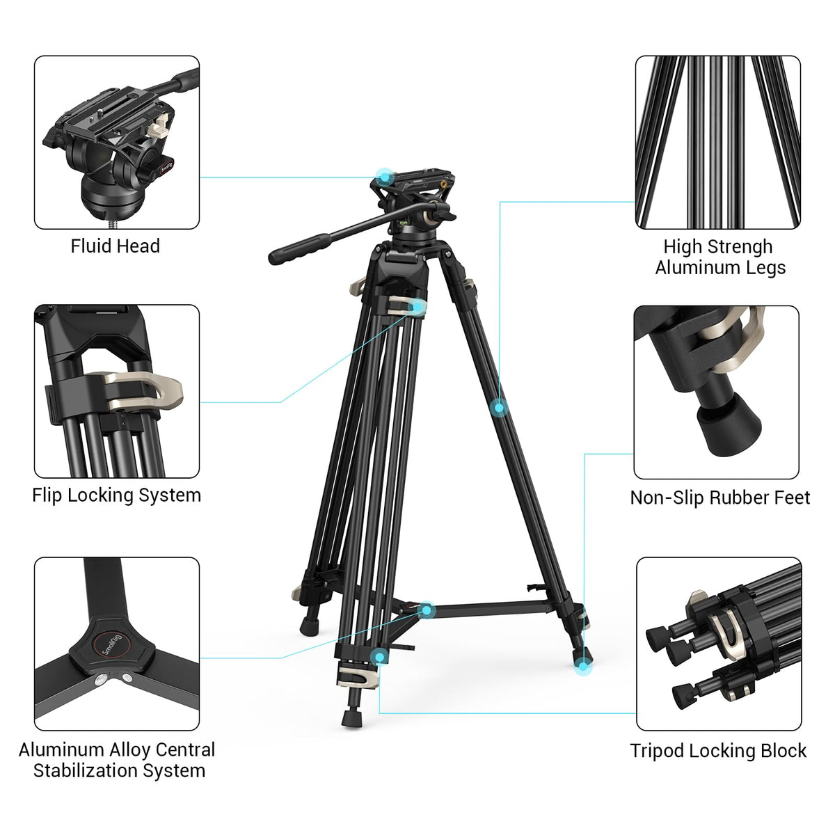 Smallrig Heavy-Duty Fluid Head Tripod With Carry Bag Dslr, Camcorder, Cameras-3751 Key Features: 1. Compatible With The Quick Release Plate For Rs 2 Stabilizer; Feel Free To Switch The Dual Modes For Dji Rs 2/Rs3/Rs3 Pro; 2. High Compatibility For Quick Disassembly And Assembly (Dedicated Quick Release Plate For This Item); 3. The Tripod With Hidden 1/4-20 Threaded Holes For Accessory Attachment; 4. Max.Payload: 17.64 Lbs (8 Kg); 5. Non-Slip Large Tripod Carrying Handle With Optimized Operation Experience; Compatibility: Universal Specifications: Product Dimensions: 160X 165 X 890Mm/6.3 X 6.5 X 35 In Package Dimensions: 160X 170 X920Mm/6.3 X 6.7 X 36.2 In Net Weight: 4Kg/8.8Lbs Package Weight: 4.9Kg/10.8Lbs Material: Aluminum Alloy