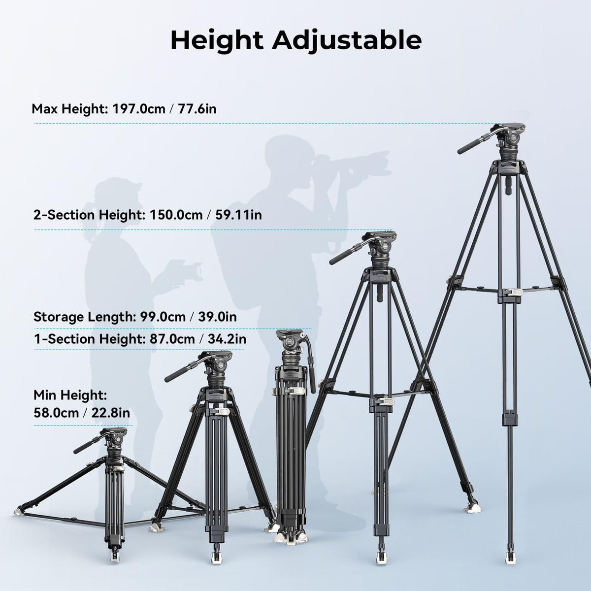 Key Features 1. One-Key Locking, Quick Height Adjustment 2. Adjustable 6-Step Fluid Counterbalance System 3. Adjustable Step-Less Damping System On Pan & Tilt 4. Easy Switch Between Quick Release Plates For Dji Rs 5. Interchangeable Ground And Mid-Level Spreaders, Flat And Spike Feet Smallrig Heavy-Duty Carbon Fiber Tripod Kit Ad-120 4463 Is A Professional Video Tripod Kit To Facilitate Video Shooting. The Tripod Has Adjustable Legs, Which Can Be Quickly Retracted And Extended Via Flip Locks. Operating Altitude Ranges From 58Cm (22.9In) To 197Cm (77.6In), And The Folded Length Is 99Cm (38.9In). The Fluid Head Features An Adjustable 6-Step Counterbalance System. When The Height Of The Gravitational Center Is 55Mm / 2.2, The 6-Step Counterbalance System Balances The Camera Or Other Rigs (Up To 8Kg / 17.6Lb) And Accurately Controls The Camera Tilt. The Adjustable Step-Less Damping System Enables Swivel And Tilt Adjustment And Provides Smooth Pan And Tilt Camera Movements. The Fluid Head 4464 Adopts A New Touch-And-Go Quick Release Mount Plate Design Which Does Not Require Alignment And Is More Efficient Than Traditional Slide-In Plates. It Is Quick Release Plate For Dji Rs Series And Quick Release Plate To Realize A Free Switch Between Stabilizer Shooting And Tripod Shooting. The User-Friendly Detachable Telescopic Handle Allows Rotation And Attaching It To Both Left And Right Sides, Making It Suitable For Any Grip. Lightweight But Sturdy Carbon Fiber Tripod Legs Have Interchangeable Flat Feet And Spikes, Ground And Mid-Level Spreaders, And A Bubble Level. The Package Also Includes A Customized Carrying Bag For Storage And Protection Of The Product. Note: 1.Not Sand Dust Resistant 2. Max Payload: 8Kg / 17.6Lb 3. Please Lock The Mid-Level Spreader And Ground Spreader Before Using This Tripod Compatibility For 501Pl Quick Release Plate 75Mm / 2.9In Bowl Adapter In The Box Tripod Kit X 1 Mid-Level Spreader For Tripod X 1 Ground Spreader For Tripod X 1 Allen Wrench X 1 Carrying Bag X 1 Smartphone Holder X 1 User Manual X 1