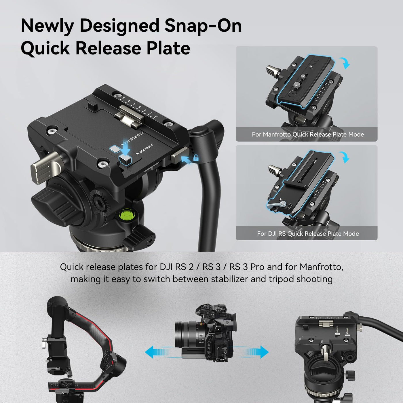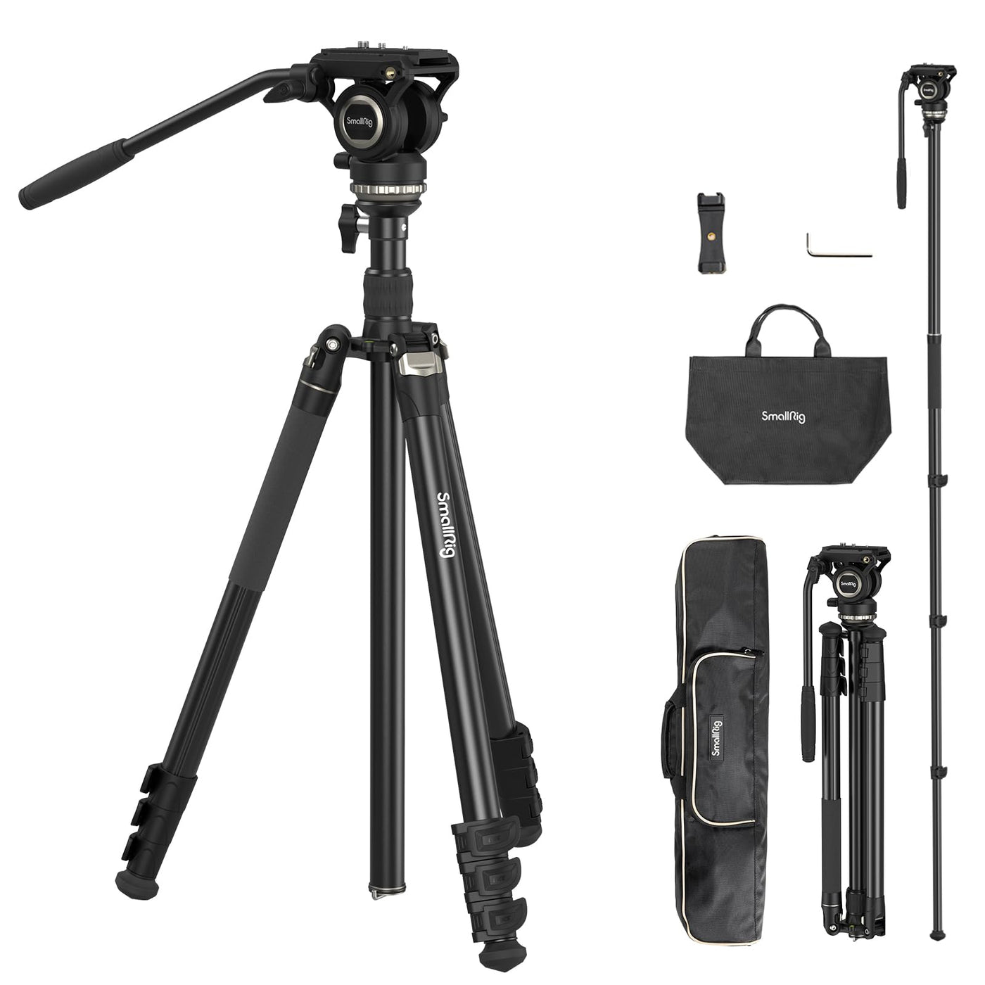 Smallrig Ct210 Video Tripod, 75 Video Camera Tripod Monopod With +/-15 Leveling Base Fluid Head, Professional Camera Tripod Comp